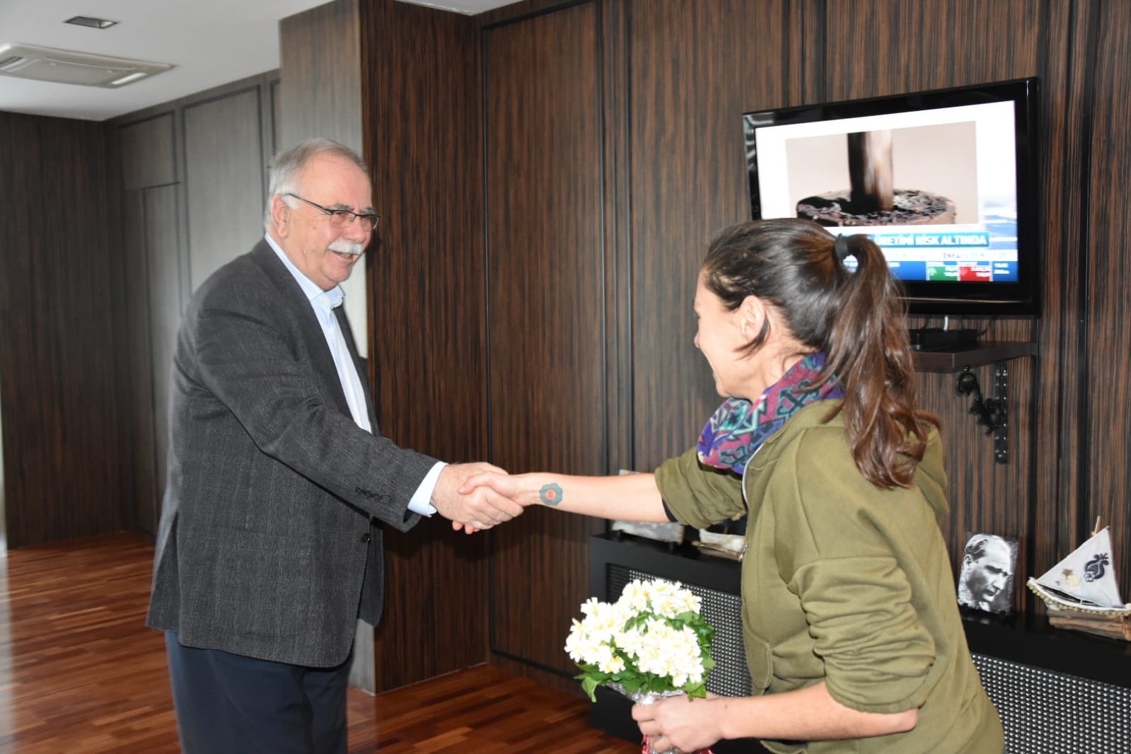 BaÅŸkan Gökhan ardından Kirazlı Balaban Tepesinde nöbet tutan doÄŸa severler ile makamında bir araya geldi. KazdaÄŸlarından topladıkları çiçekleri kendisine takdim eden doÄŸa severlere teÅŸekkür eden BaÅŸkan Gökhan, ziyaretten duyduÄŸu memnuniyeti dile getirdi. Sohbet ortamında geçen ziyarette BaÅŸkan Gökhan, doÄŸaseverlerden altın madenciliÄŸine karşı devam eden nöbet hakkında bilgi aldı.Â