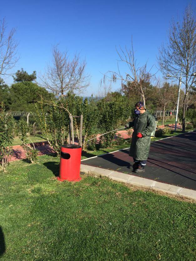 Bu doğrultuda açık alan, park ve yeşil alan gibi ortak kullanım bölgelerinde bulunan kent mobilyaları, çocuk oyun grupları ve fitness aletleri salgın hastalıklara karşı önlem amacıyla dezenfekte ediliyor.