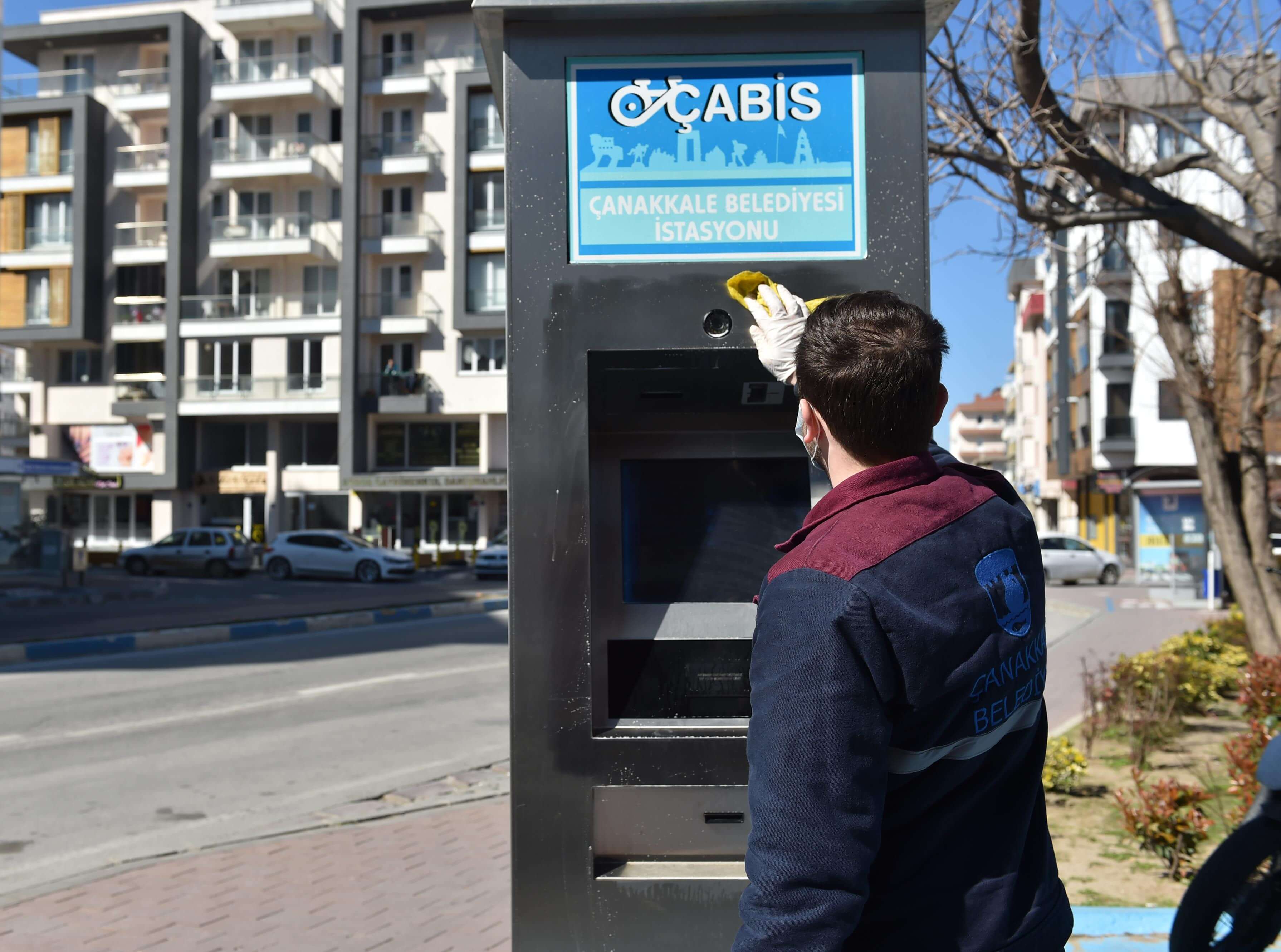 Alınan önlemler ve yürütülen çalışmalar kapsamında, kent genelindeki tüm ÇABİS kiralama istasyonları, bisikletler ve bisiklet park alanları dezenfekte ediliyor.