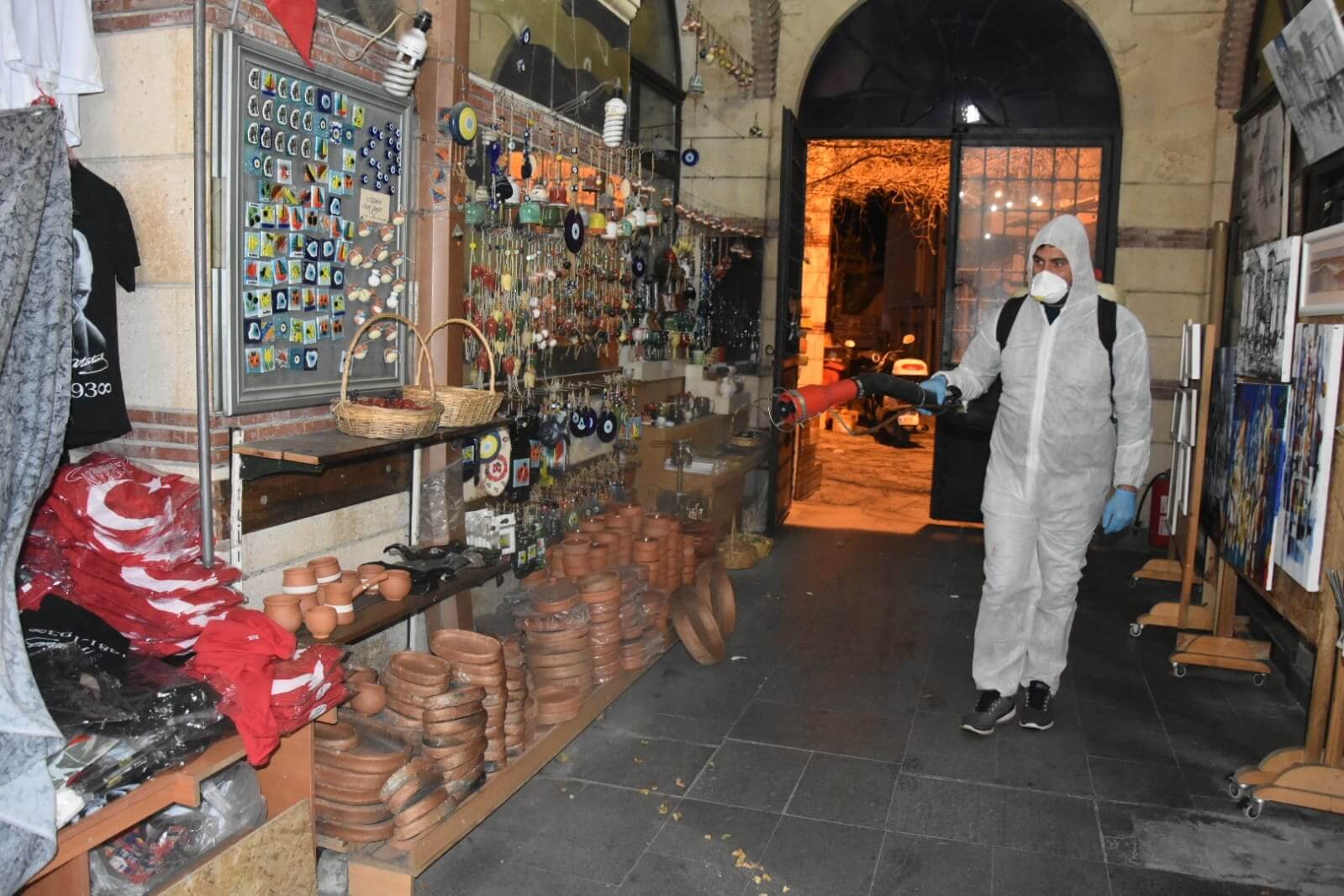 Çanakkale Belediyesinin salgın hastalık risklerine karşı almış olduğu önlemler ve çalışmalar devam ediyor. Bu kapsamda kentimizin önemli değerlerinden biri olan Aynalı Çarşı, çarşıyı ziyarete gelen kentlilerimiz, yerli ve yabancı turistlerimiz ile çarşı esnafımızın sağlığı için dezenfekte edildi. Aynalı Çarşı, haftalık rutin olarak dezenfekte edilmeye devam edecek.