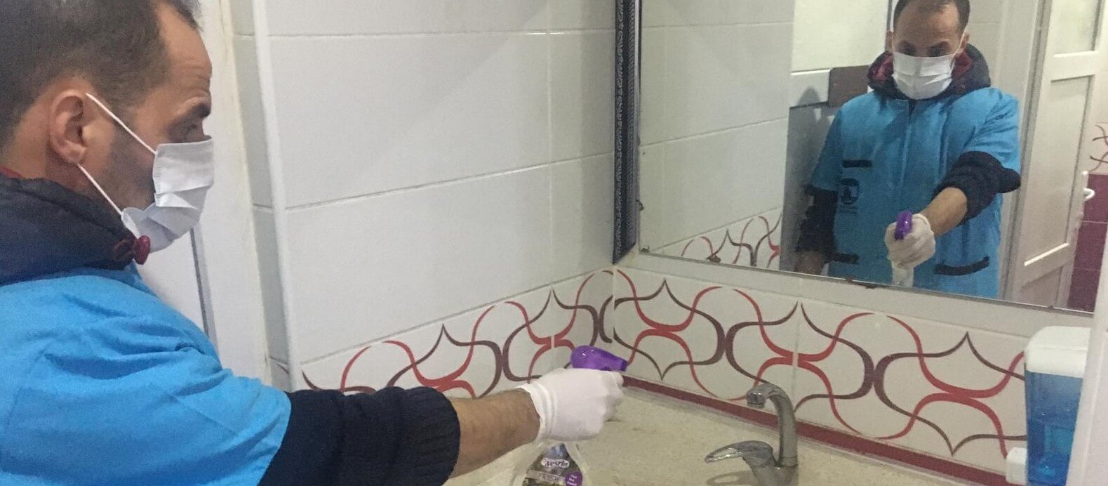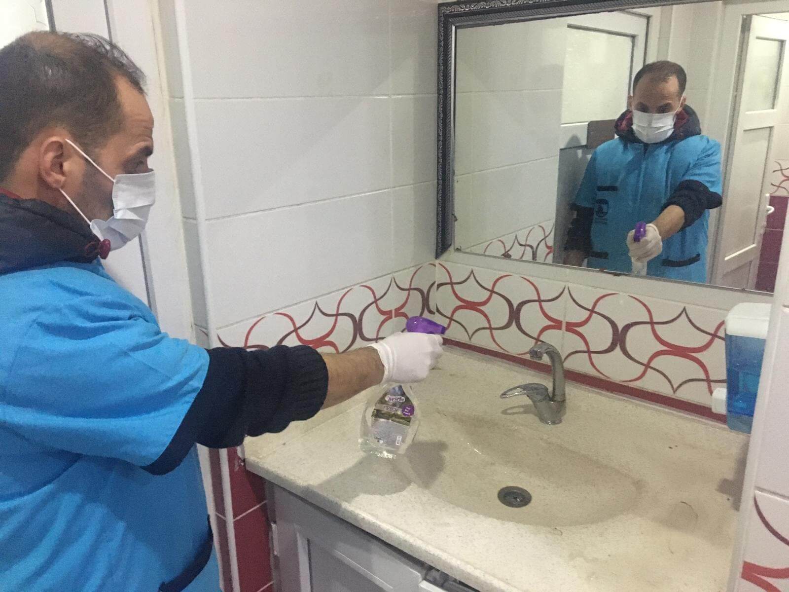 Virüs riskine karşı Belediyemizin gerçekleştirdiği çalışmalar doğrultusunda kentlilerimizin ortak kullanım alanlarında da sıklıkla dezenfekte çalışmaları gerçekleştiriliyor. Bu kapsamda Sosyal Tesislerde de genel dezenfekte çalışmaları yürütülüyor.