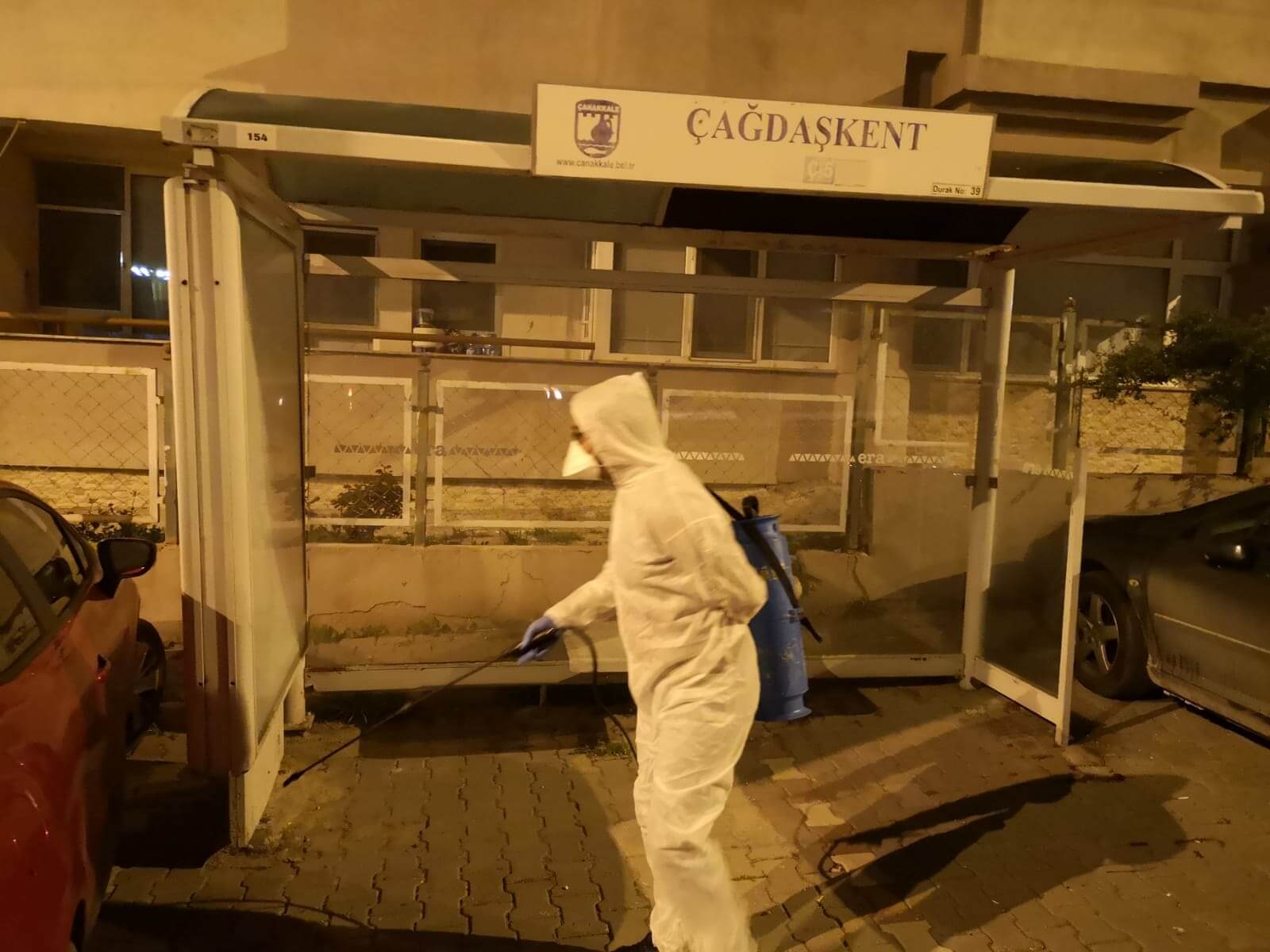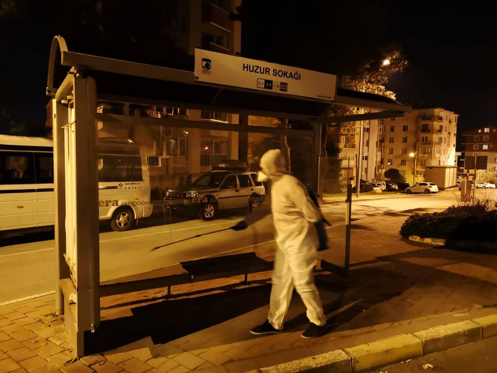 Çanakkale Belediyesinin salgın hastalık risklerine karşı almış olduğu önlemler ve çalışmalar kapsamında, kent içi ulaşımı sağlayan halk otobüslerimiz ve duraklarımız, kentlilerimizin sağlığı ve esenliği için görev başında olan ekiplerimizce her gece düzenli olarak dezenfekte ediliyor.