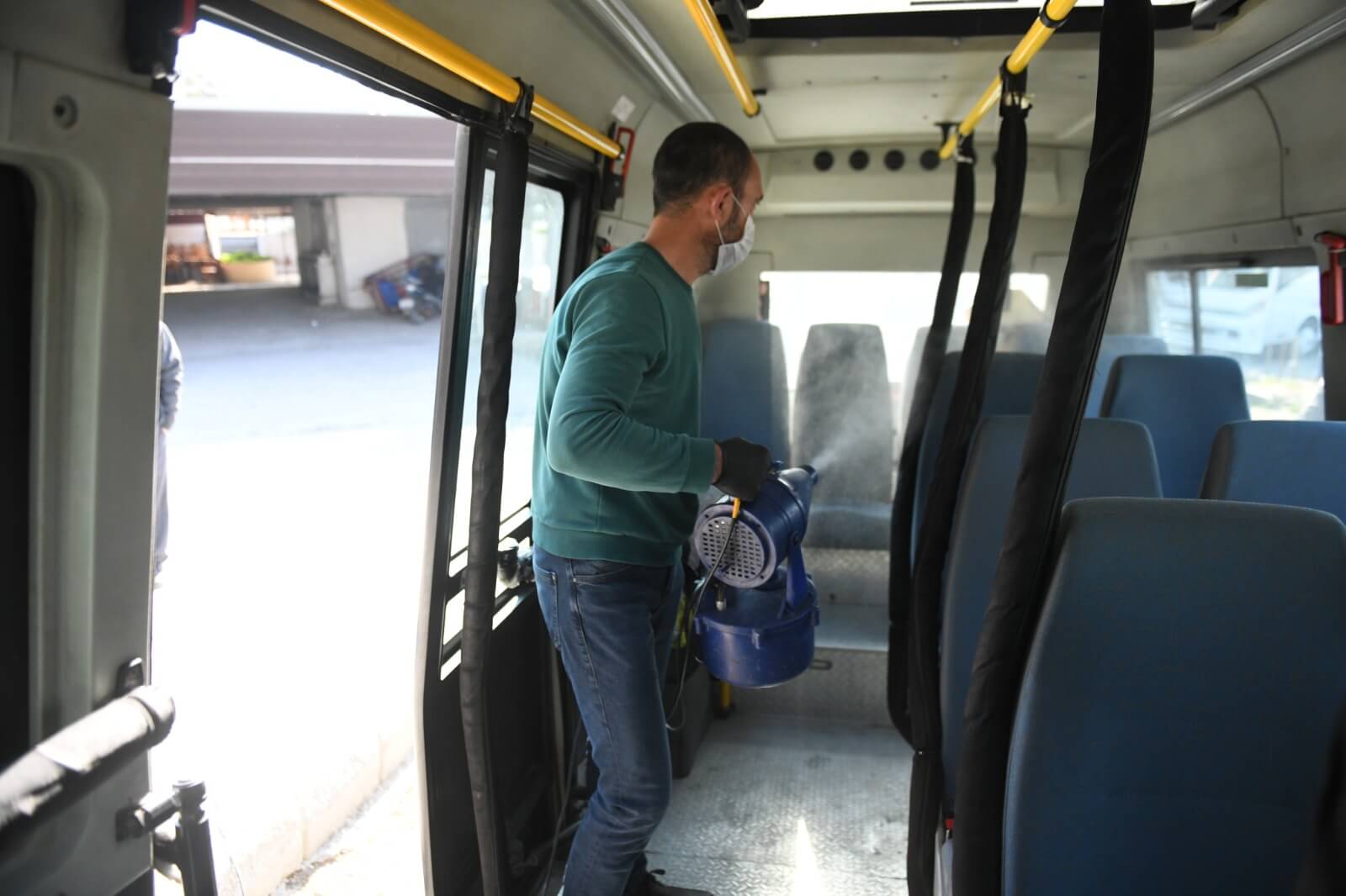 Öte yandan kent içi toplu taşımada gerçekleştirilen rutin dezenfeksiyon çalışmaları da hız kesmeden devam ediyor. Günlük olarak gerçekleştirilen çalışmalar kapsamında kent içi toplu taşıma araçları yüksek düzey ekolojik dezenfektanlar ile salgın hastalık riskine karşı dezenfekte ediliyor.