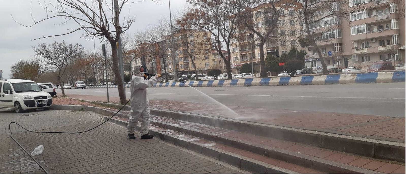 Çanakkale Belediyesi, kent genelinde gerçekleştirdiği yol dezenfeksiyon çalışmalarına Barbaros Mahallesi ile devam etti. Barbaros Mahallesinde gerçekleştirilen dezenfeksiyon çalışması kapsamında ekipler, cadde ve sokaklar başta olmak üzere çöp konteynerleri, kent mobilyaları ve ortak kullanım alanlarını dezenfektan sıvılar ile dezenfekte etti.