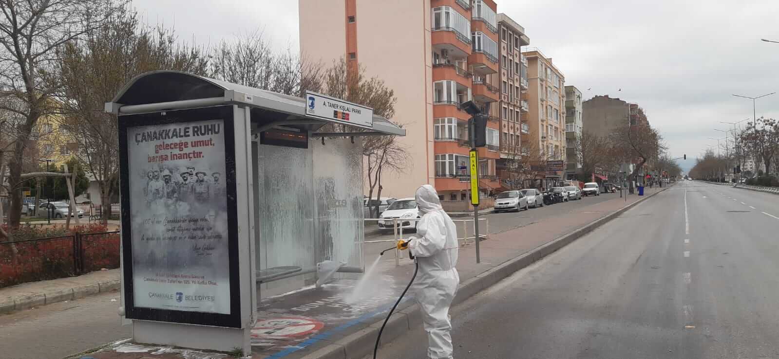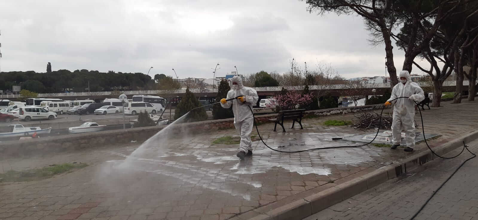 Çanakkale Belediyesi, salgın hastalık riskine karşı kentlilerin yoğun olarak kullandığı alanlarda aralıksız olarak gerçekleştirilen dezenfeksiyon çalışmalarına devam ediyor.