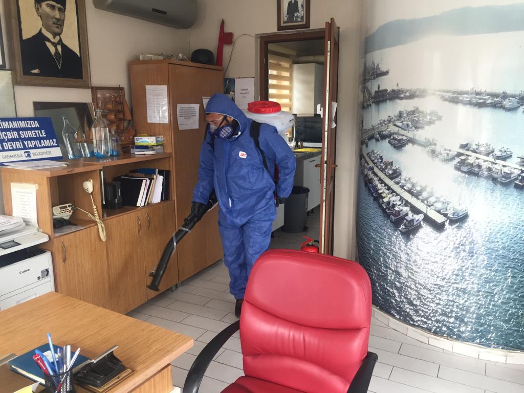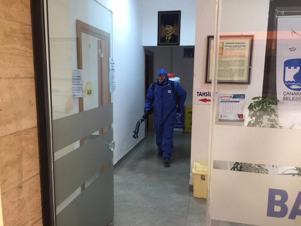 Dezenfeksiyon çalışmaları kapsamında ekipler, Çanakkale Belediyesi Hayvan Barınağı, Yat Limanı ve Mahalle Muhtarlıkları yüzsek düzey ekolojik dezenfeksiyon uygulaması ile dezenfekte edildi.
