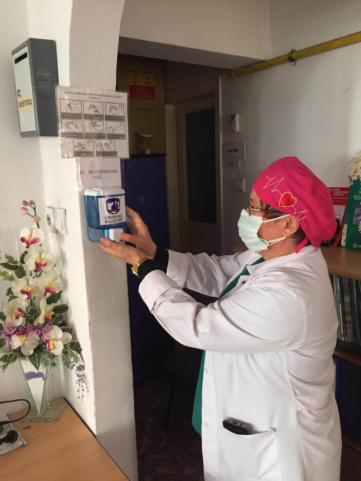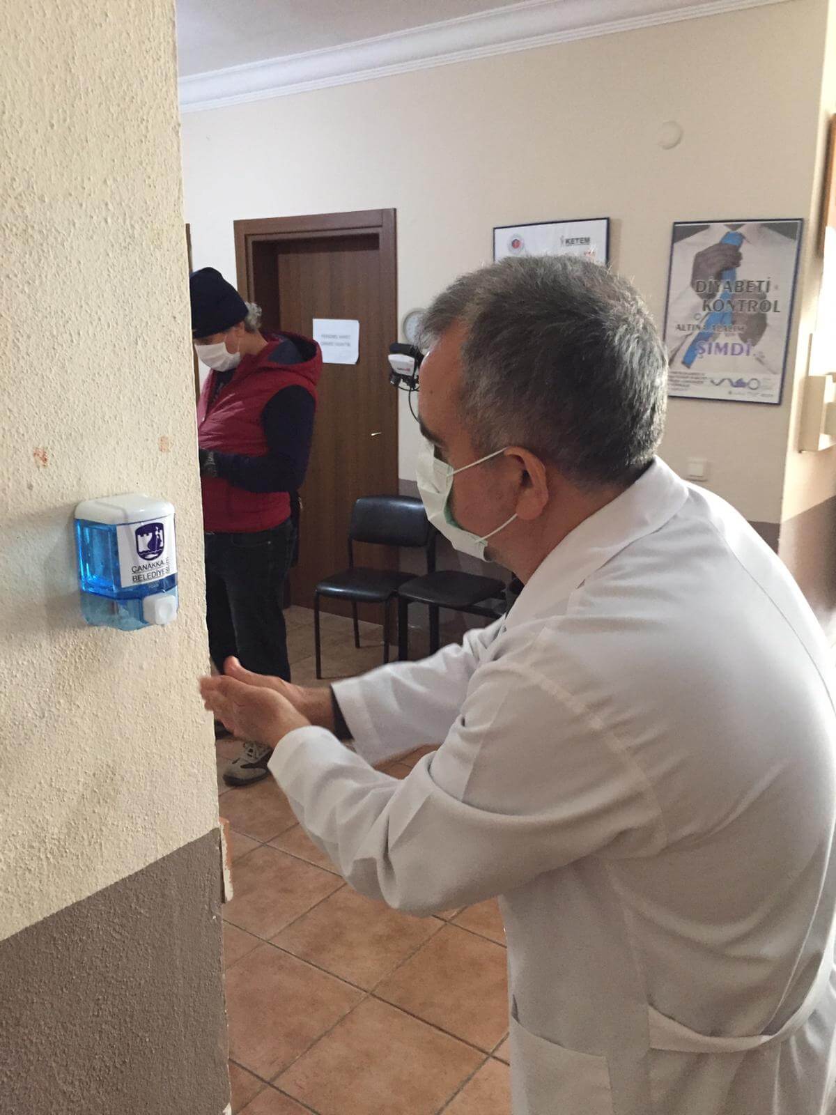 Aile Sağlığı Merkezlerinin çeşitli noktalarına da hem personel hem de kentlilerin sağlığına ve hijyenine yönelik koruma amaçlı dezenfektanlar yerleştirildi.