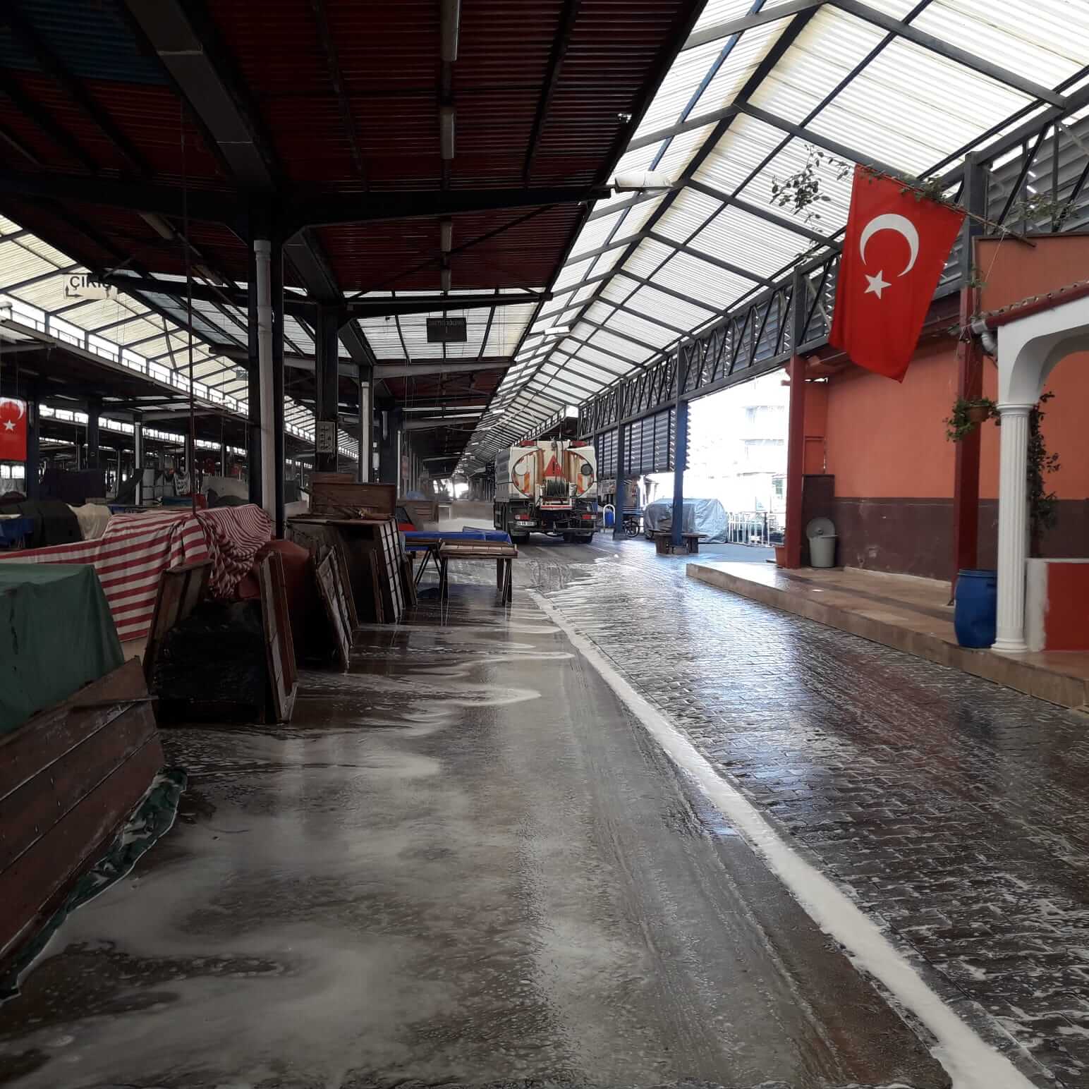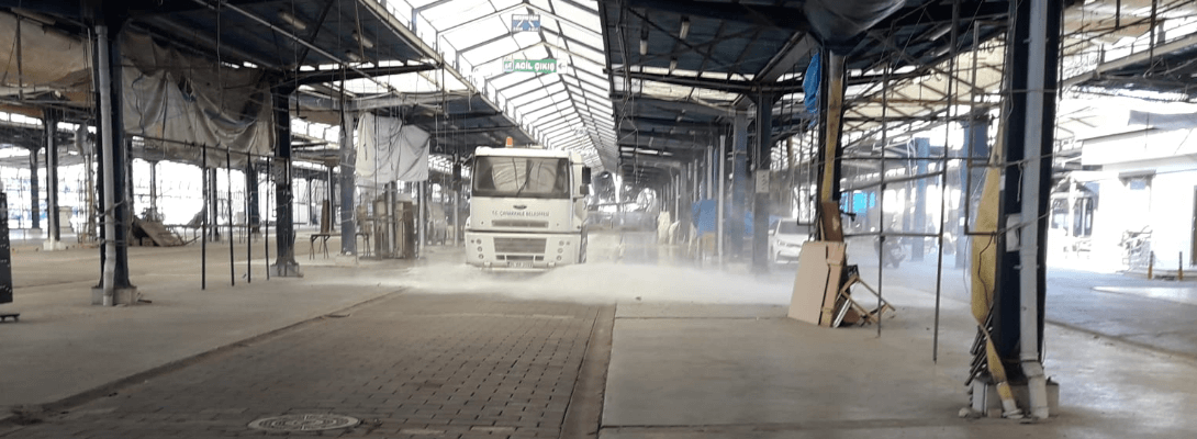 Çanakkale Belediyesi Temizlik İşleri Müdürlüğü ekipleri tarafından sürdürülen çalışmalar doğrultusunda; İsmetpaşa Mahallesi'nde bulunan Kapalı Pazar Yeri'nde rutin olarak gerçekleştirilen dezenfeksiyon çalışmaları devam ediyor.
