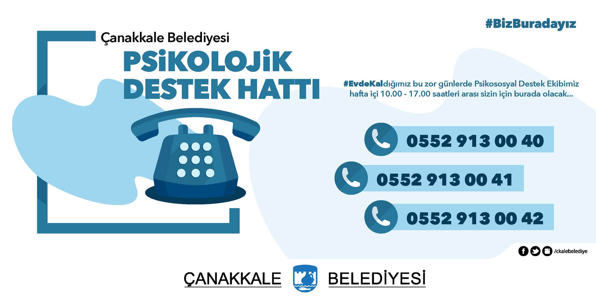 Çanakkale Belediyesi Psikolojik Destek Hattımız, hafta içi her gün 10.00-17.00 saatleri arasında kentlilerimize hizmet verecek.