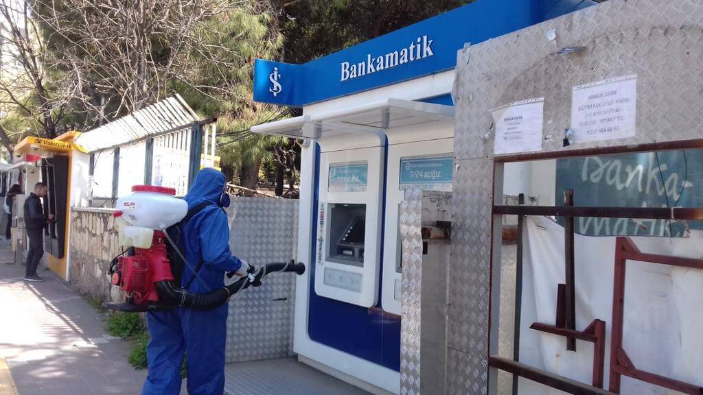 Çanakkale Belediyesi ekiplerince aralıksız gerçekleştirilen çalışmalar kapsamında, kentlilerin ortak kullanım alanları olan Aile Sağlığı Merkezleri ve ATM'ler yüksek düzey ekolojik dezenfeksiyon uygulaması ile dezenfekte edildi.