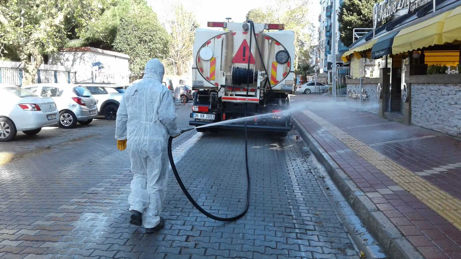 Kent genelinde devam eden çalışmalar kapsamında, cadde ve sokaklar, Belediye hizmet birimleri ve kentlilerin ortak kullanım alanları düzenli aralıklarla dezenfekte ediliyor.