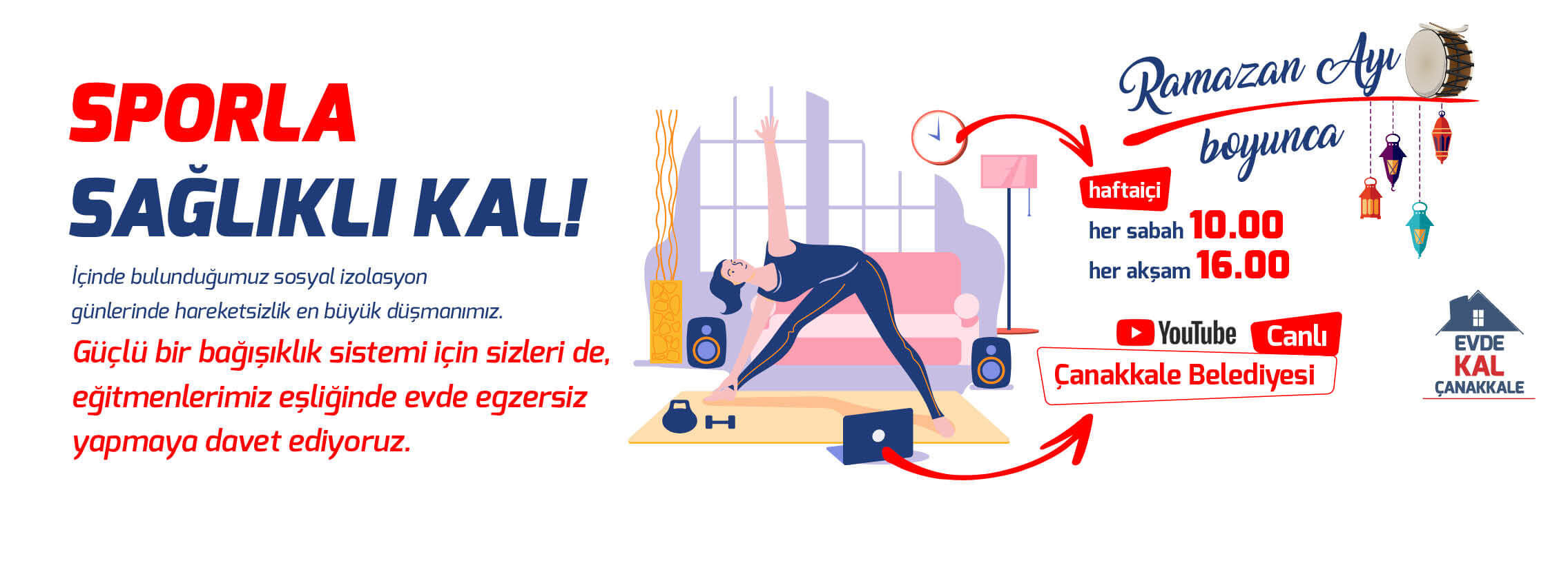 İçinde bulunduğumuz sosyal izalasyon günlerinde kentlilerimizin evlerinde hareketsiz kalmaması amacı ile YouTube hesabımızdan başlattığımız "Sporla Sağlıklı Kal" etkinliğimiz, 24 Nisan 2020 Cuma gününden itibaren Ramazan Ayı boyunca hafta içi hergün 10.00 ve 16.00 saatlerinde canlı olarak yayınlanacaktır.