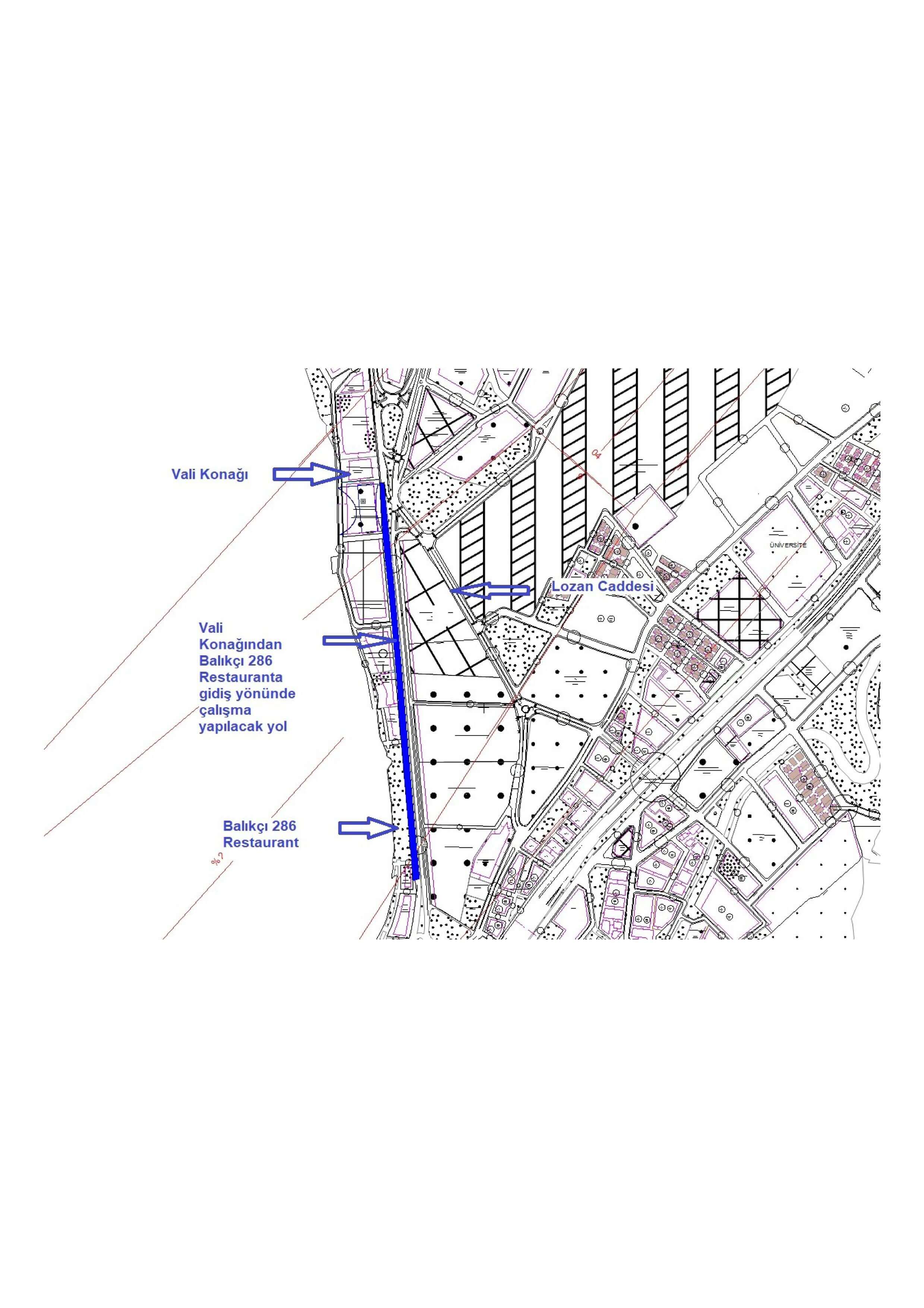 9-12 Mayıs 2020 tarihleri arasında gerçekleştirilecek çalışmalar kapsamında Lozan Caddesi alternatif güzergah olarak kullanılabilecek olup, çalışma sürecince belirtilen alan (Vali Konağı-Balıkçı 286 Restaurant arası) yaya ve araç trafiğine kapalı olacaktır. Çalışmalar süresince kentlilerimizin trafik işaret ve işaretçilerine uymalarını diler, bilgilerine sunarız.