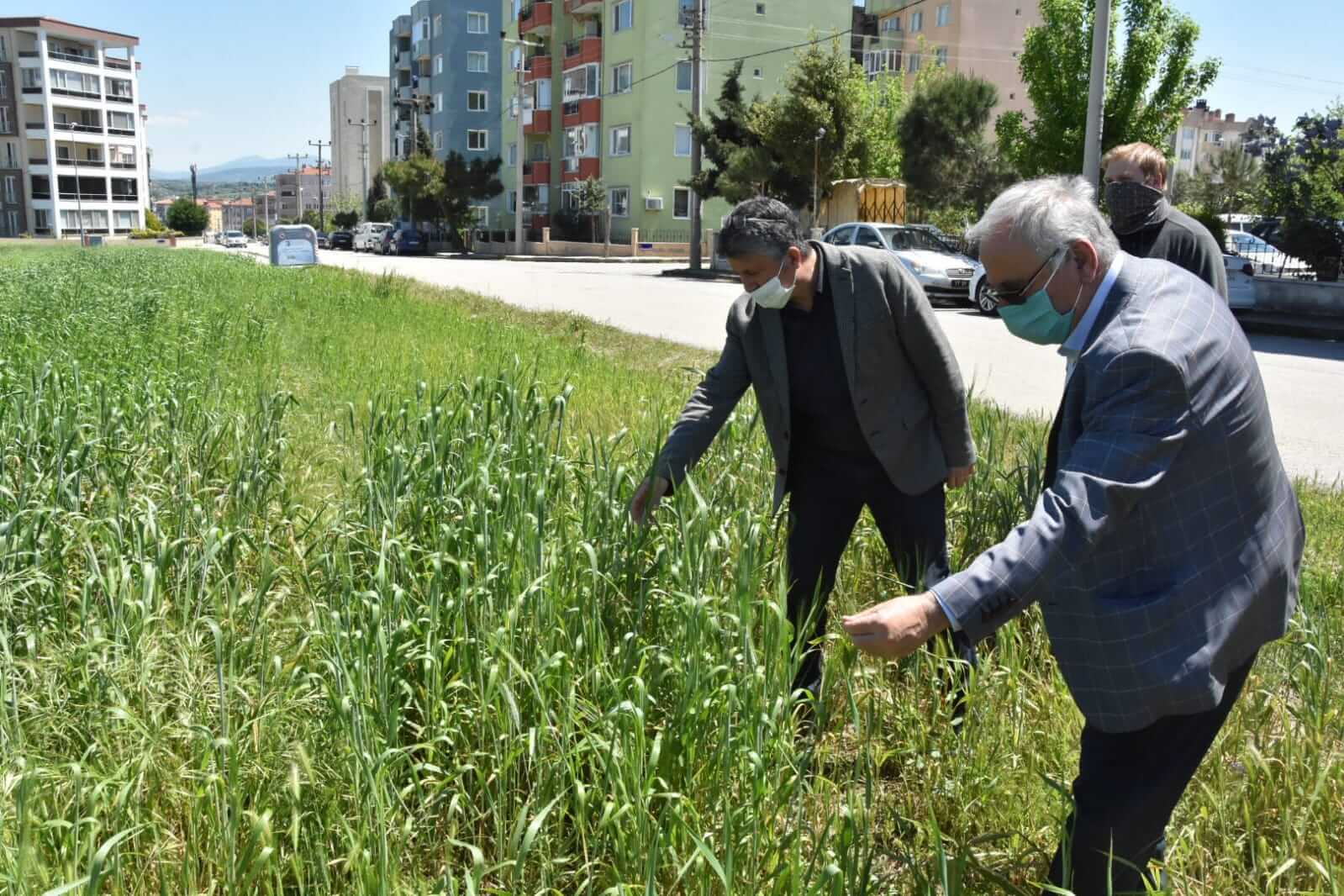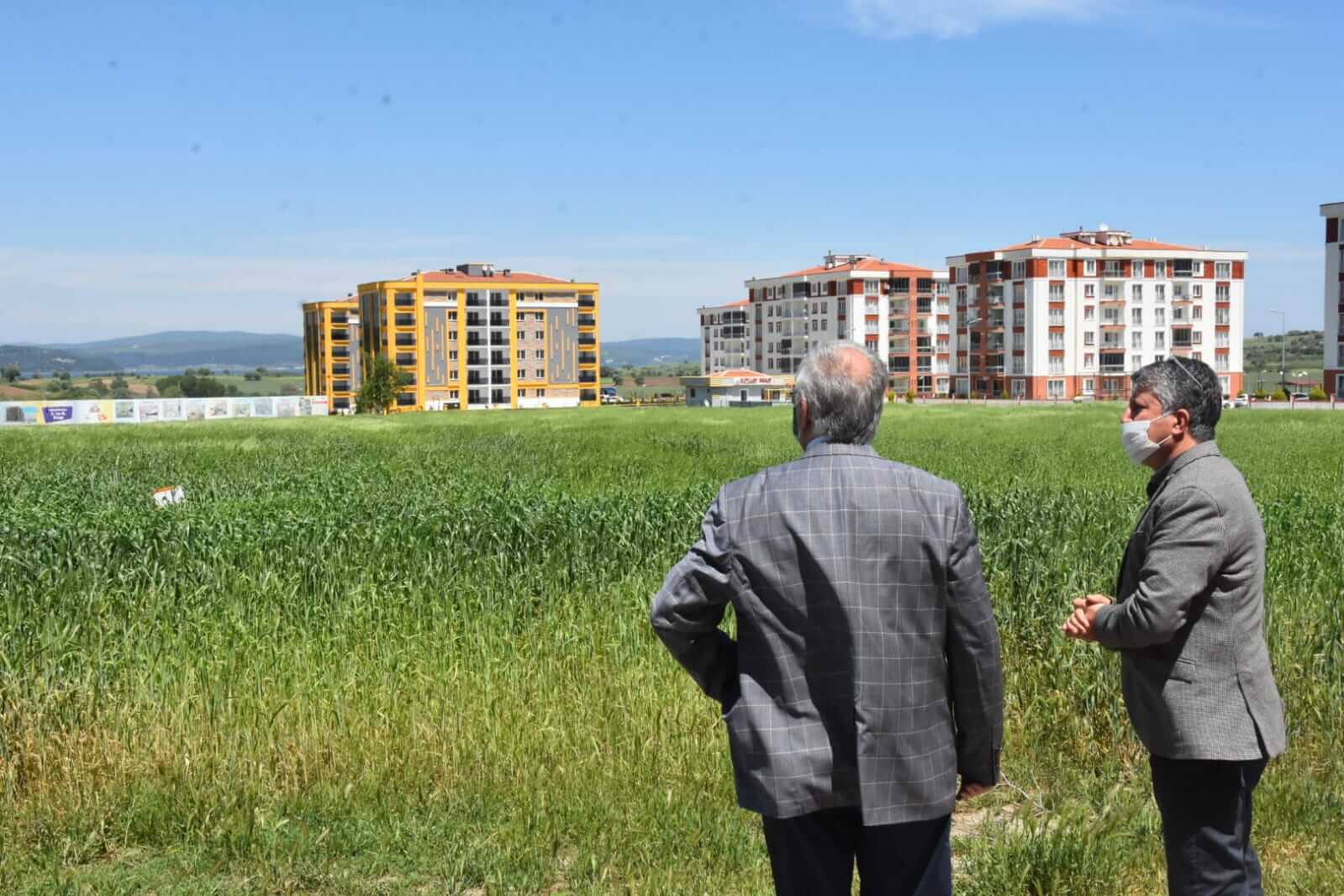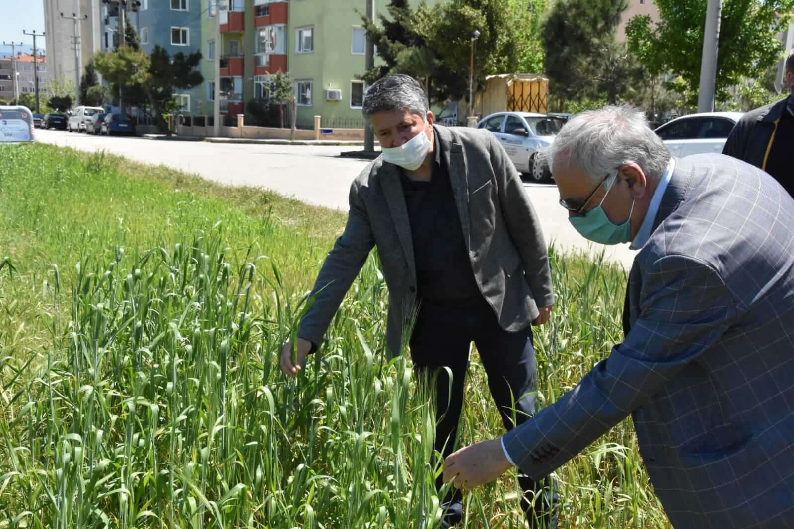 Belediye Başkanı Ülgür Gökhan, Belediyemize ait 4 ayrı parselde, toplam 107 dekar arazide ekimi gerçekleştirilen ve başak vermeye başlayan karakılçık buğday alanlarını inceledi.
