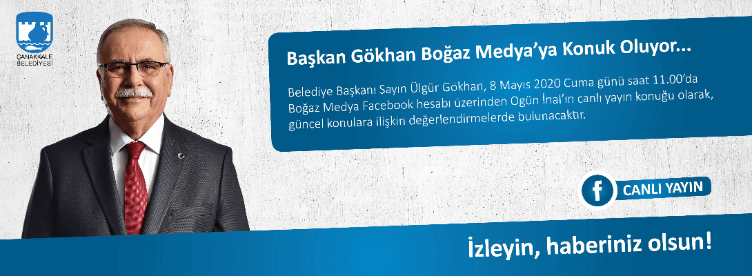 Belediye Başkanı Sayın Ülgür Gökhan, 8 Mayıs 2020 Cuma günü saat 11.00'de Boğaz Medya Facebook hesabı üzerinden Ogün İnal'ın canlı yayın konuğu olarak, güncel konulara ilişkin değerlendirmelerde bulunacak.