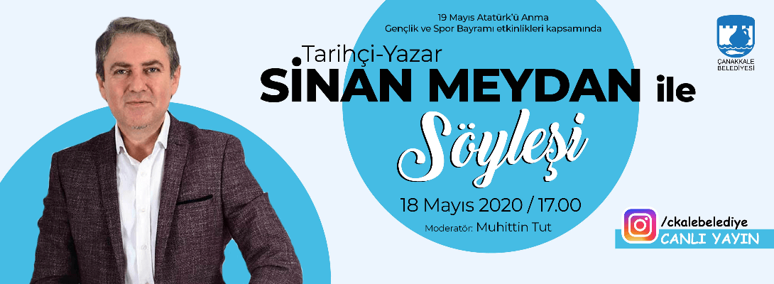 Tarihçi Sinan Meydan, Çanakkale Belediyesinin 19 Mayıs Atatürk'ü Anma Gençlik ve Spor Bayramı etkinlikleri kapsamında Instagram canlı yayını ile evlerinize konuk olacak.