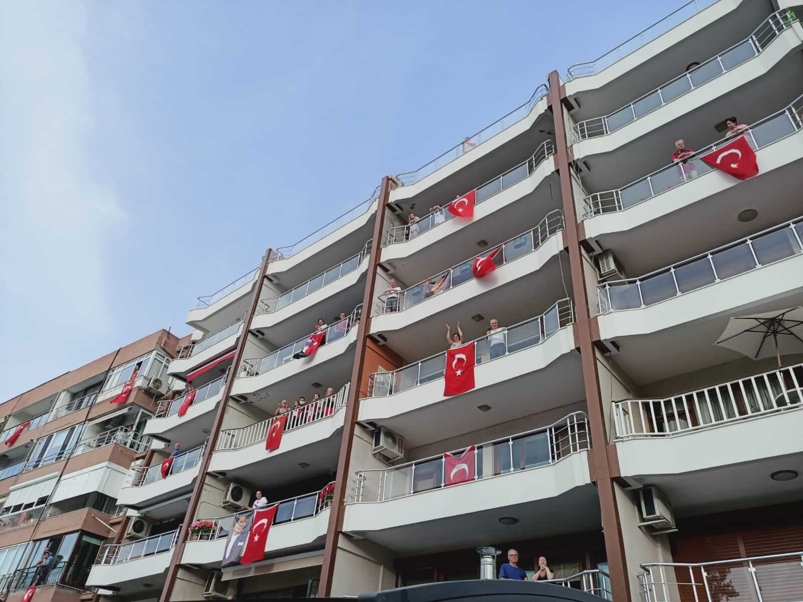 19 Mayıs Atatürk’ü Anma, Gençlik ve Spor Bayramı etkinlikleri kapsamında kentliler evlerinin balkonlarından hep bir ağızdan İstiklal Marşı'nı okudu.