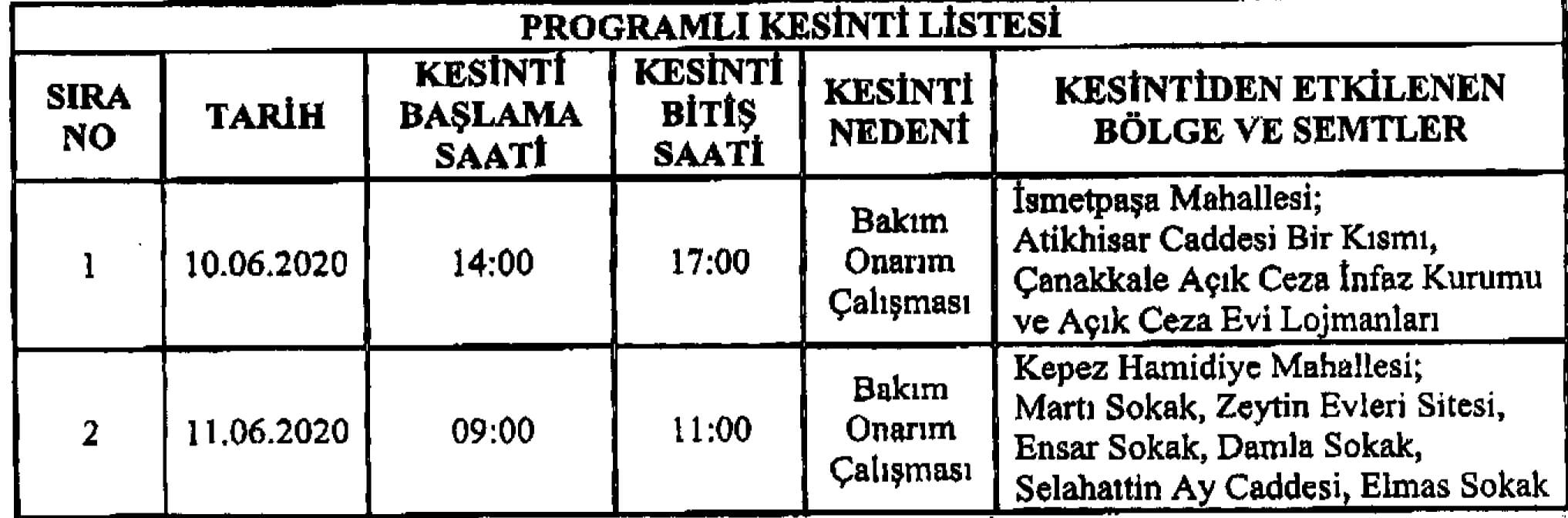 Uludağ Elektrik Dağıtım A.Ş. Çanakkale İşletme Bakım Mühendisliğinden yapılan açıklamaya göre;