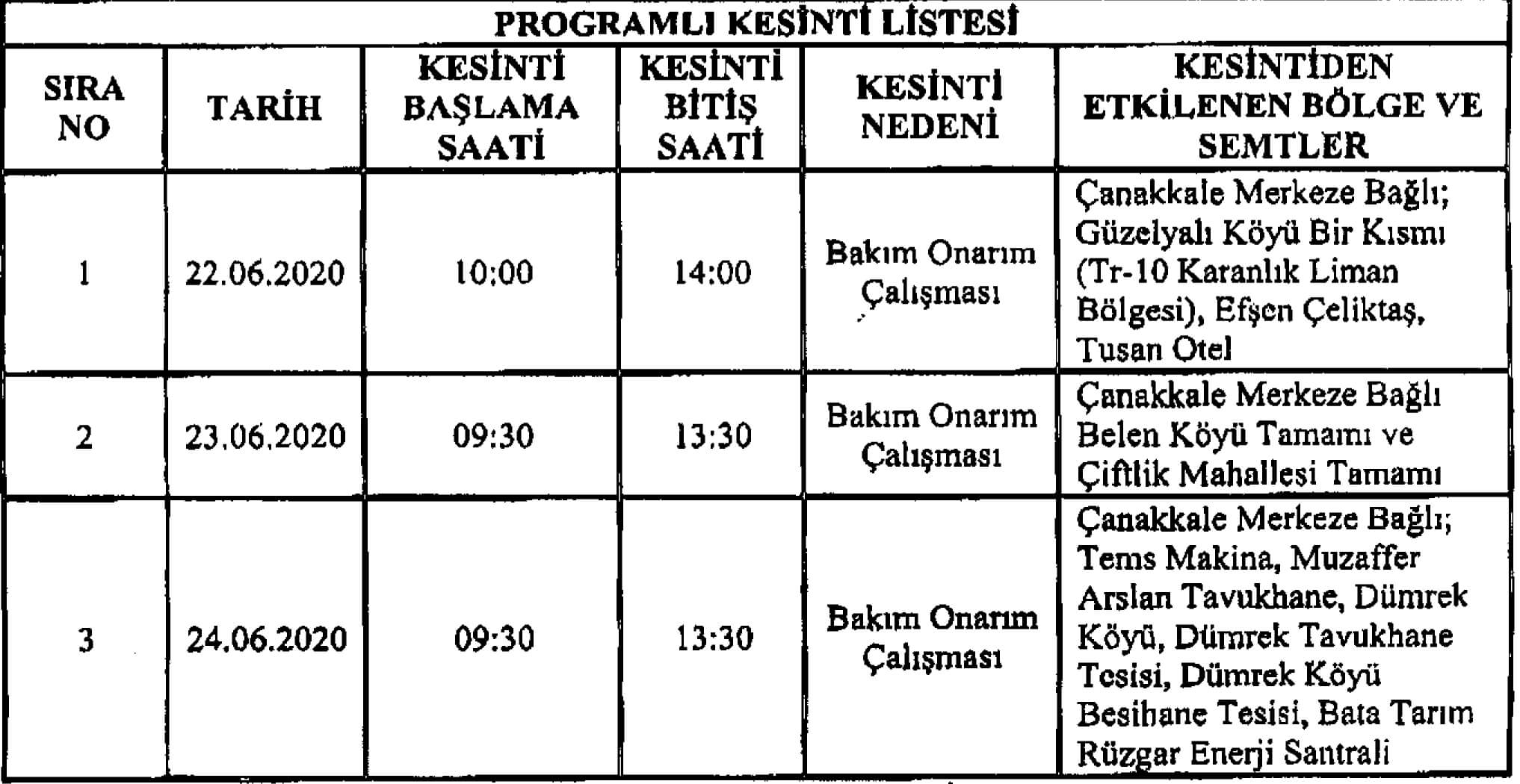 Uludağ Elektrik Dağıtım A.Ş. Çanakkale İşletme Bakım Mühendisliğinden yapılan açıklamaya göre;