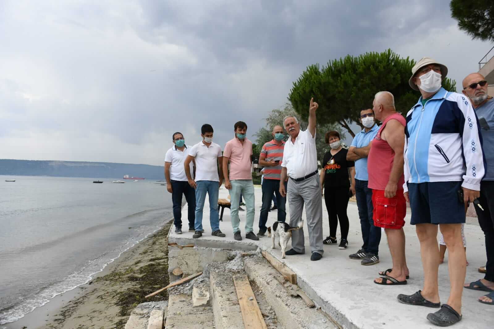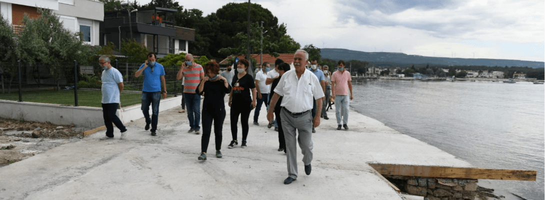 Başkan Gökhan, teknik inceleme gezisi kapsamında son olarak Dardanos'ta gerçekleştirilen sahil düzenlemelerini ziyaret etti. Yapımı büyük ölçüde tamamlanan düzenlemelere ilişkin incelemelerde bulunan Başkan Gökhan, çevre sakinleri ile birlikte yapılan düzenlemelere ilişkin görüş alışverişinde bulunarak talepleri dinledi.