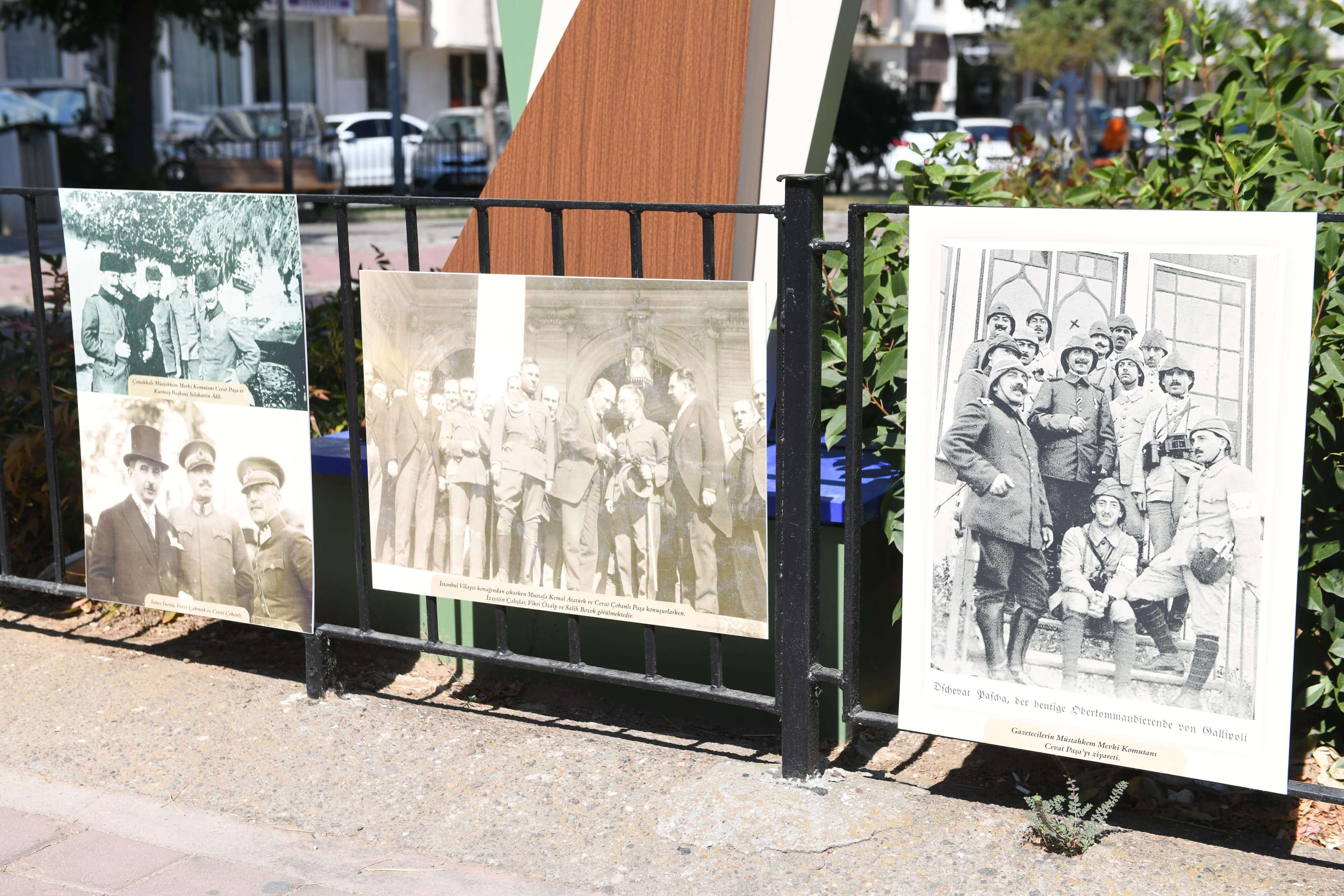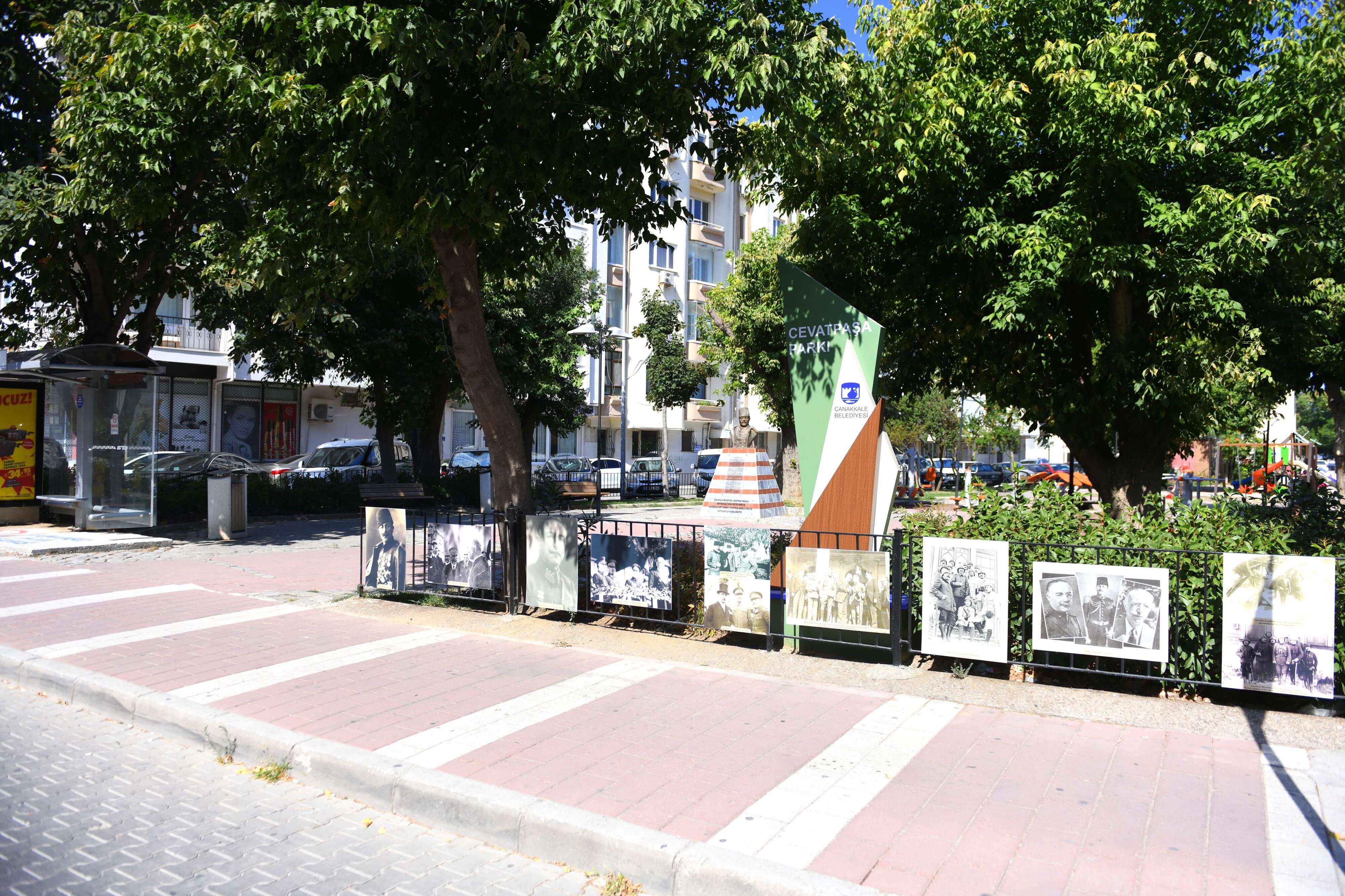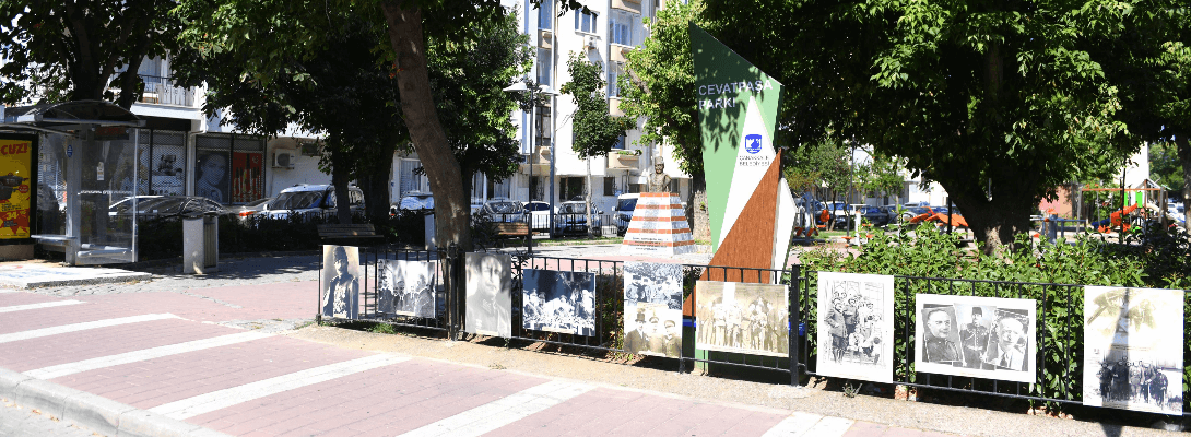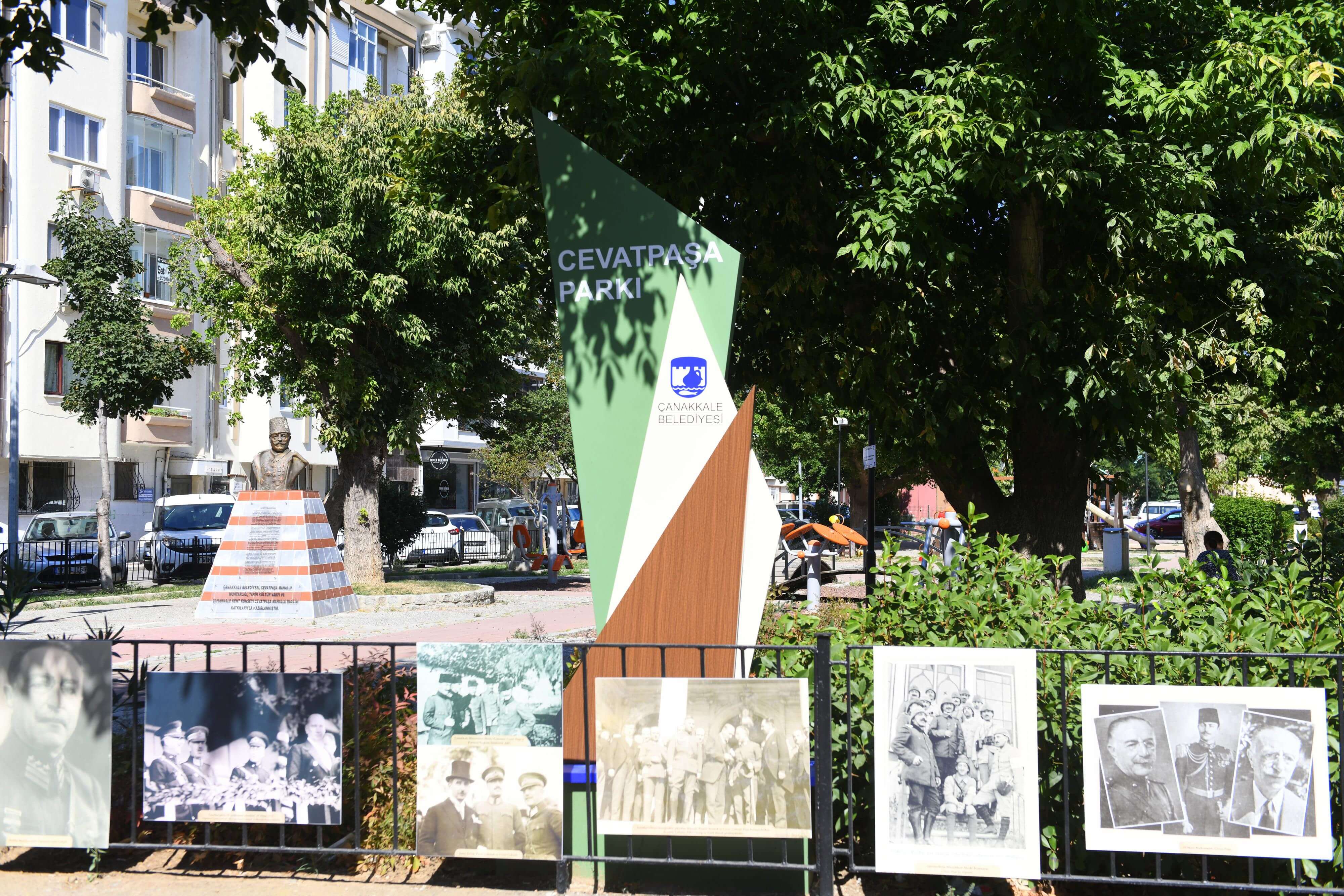 18 Mart kahramanlarından Cevat Çobanlı Paşa'nın fotoğrafları, içerisinde büstünün de yer aldığı ve adının verildiği parkta sergileniyor.