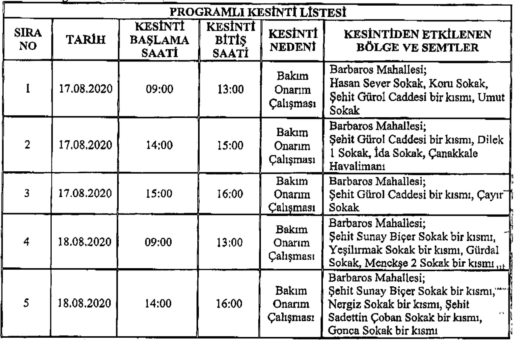 Uludağ Elektrik Dağıtım A.Ş. Çanakkale İşletme Bakım Mühendisliğinden yapılan açıklamaya göre;