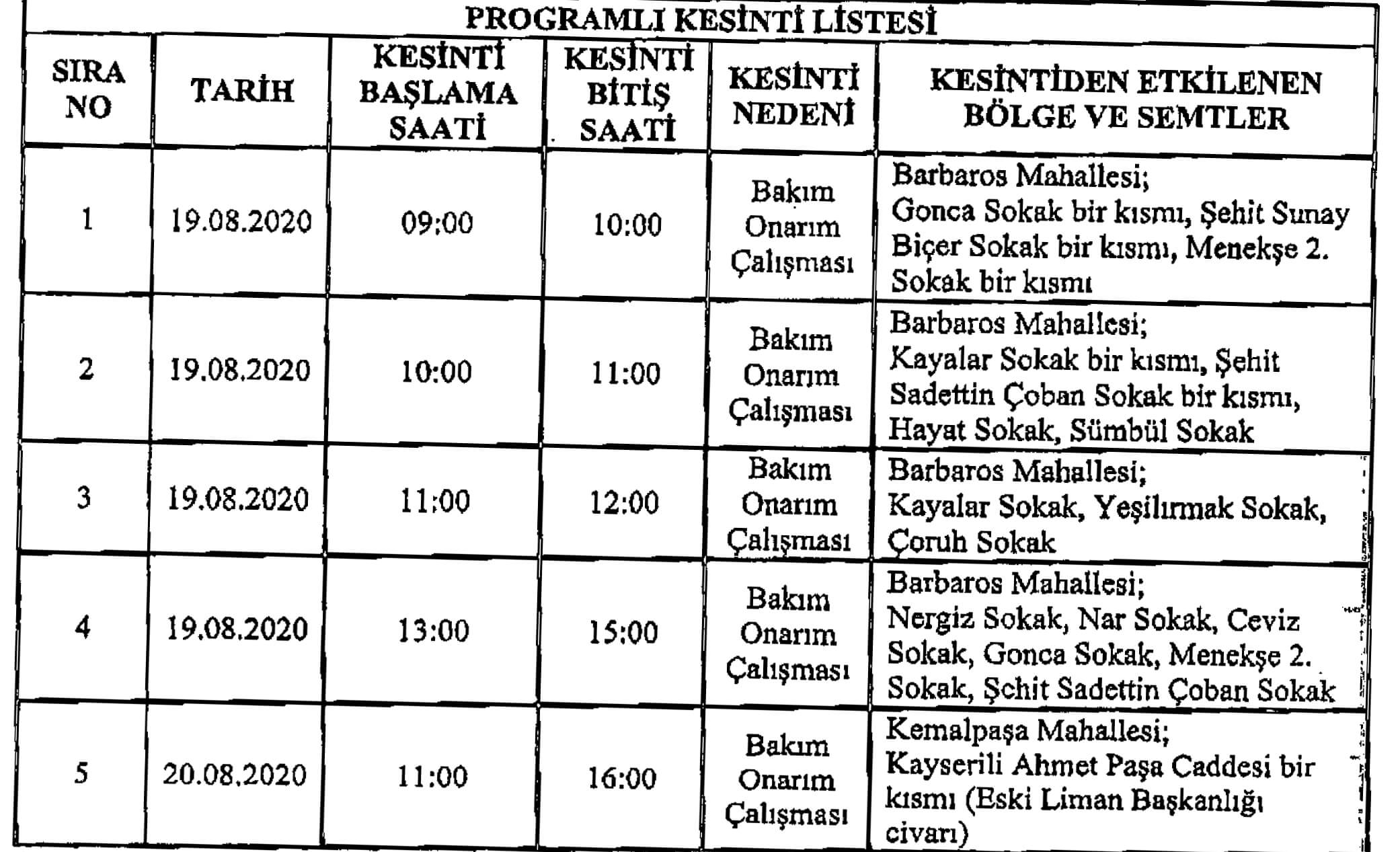 Enerji Nakil Hatlarında yapılacak bakım onarım çalışmaları kapsamında görselde belirtilen tarih ve belirtilen yerlerde elektrik kesintisi uygulanacaktır.