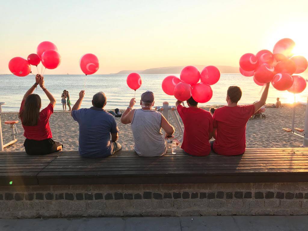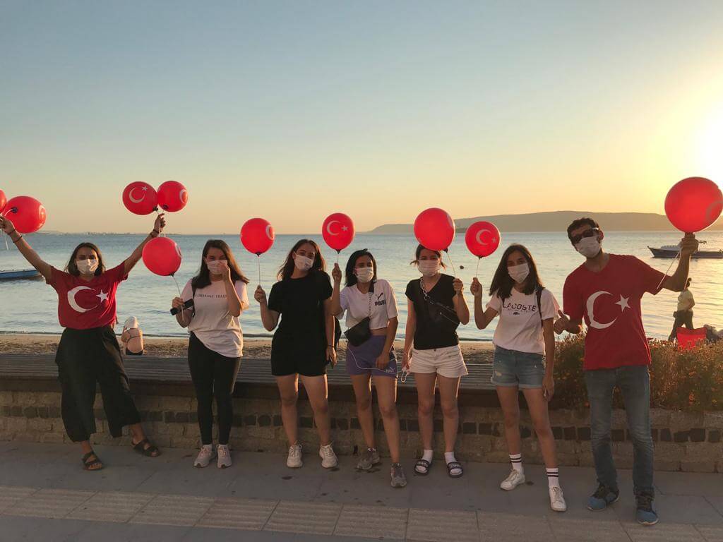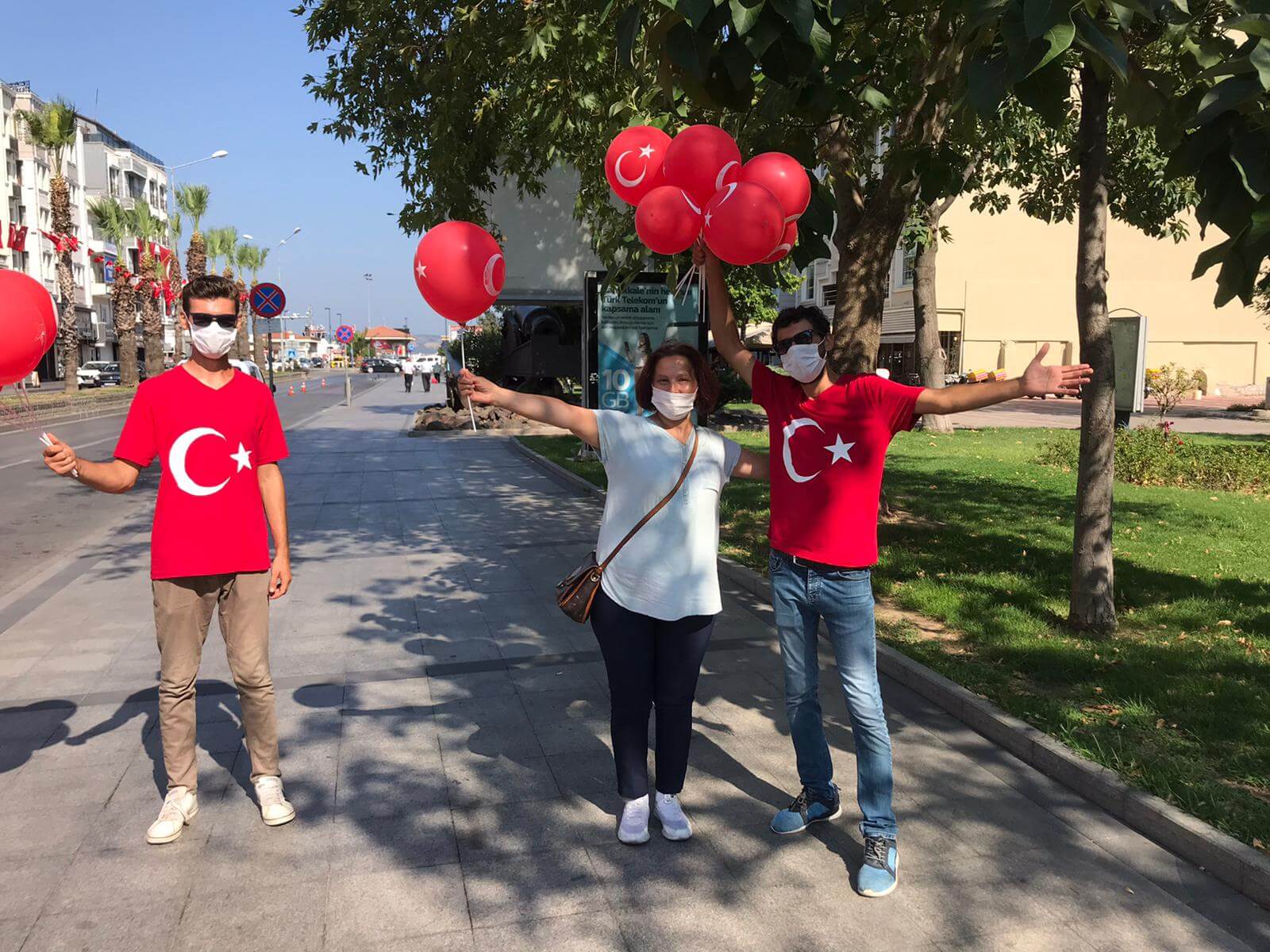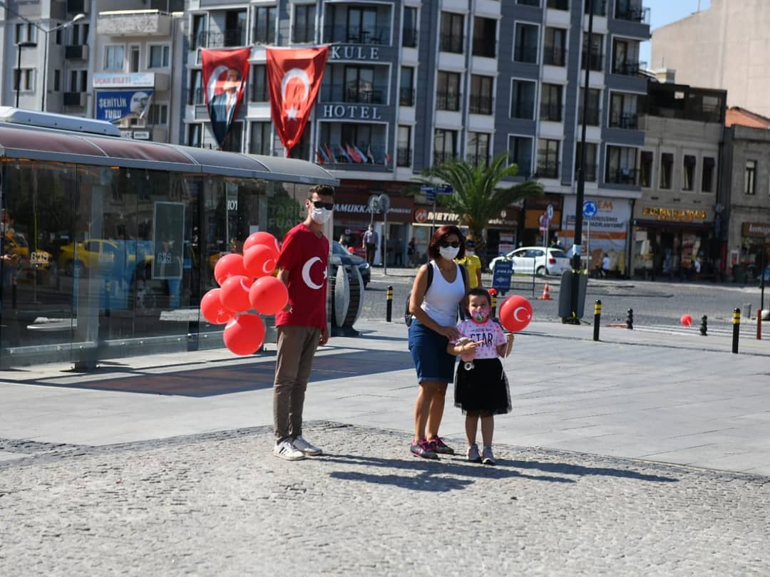 Çanakkale Belediyesi tarafından düzenlenen 30 Ağustos etkinlikleri kapsamında, kentin cadde ve sokaklarında zafer şarklıları ve marşları yankılanırken, dağıtılan Türk Bayraklı balonlar ile de kentliler Zafer Bayramı'nı coşku ile kutladı.