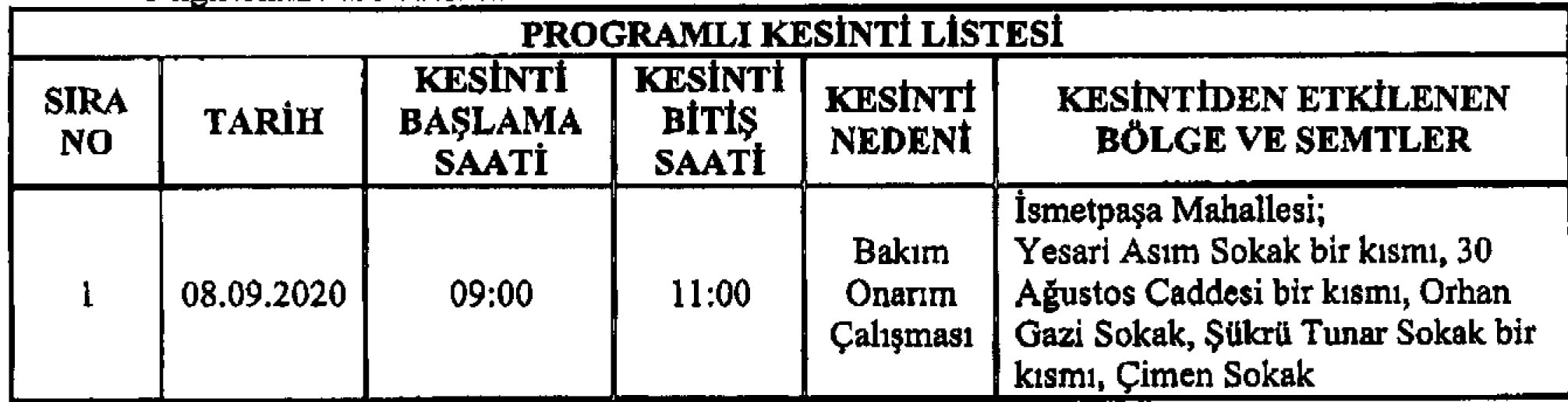 Enerji Nakil Hatlarında yapılacak bakım onarım çalışmaları kapsamında görselde belirtilen tarih ve belirtilen yerlerde elektrik kesintisi uygulanacaktır.