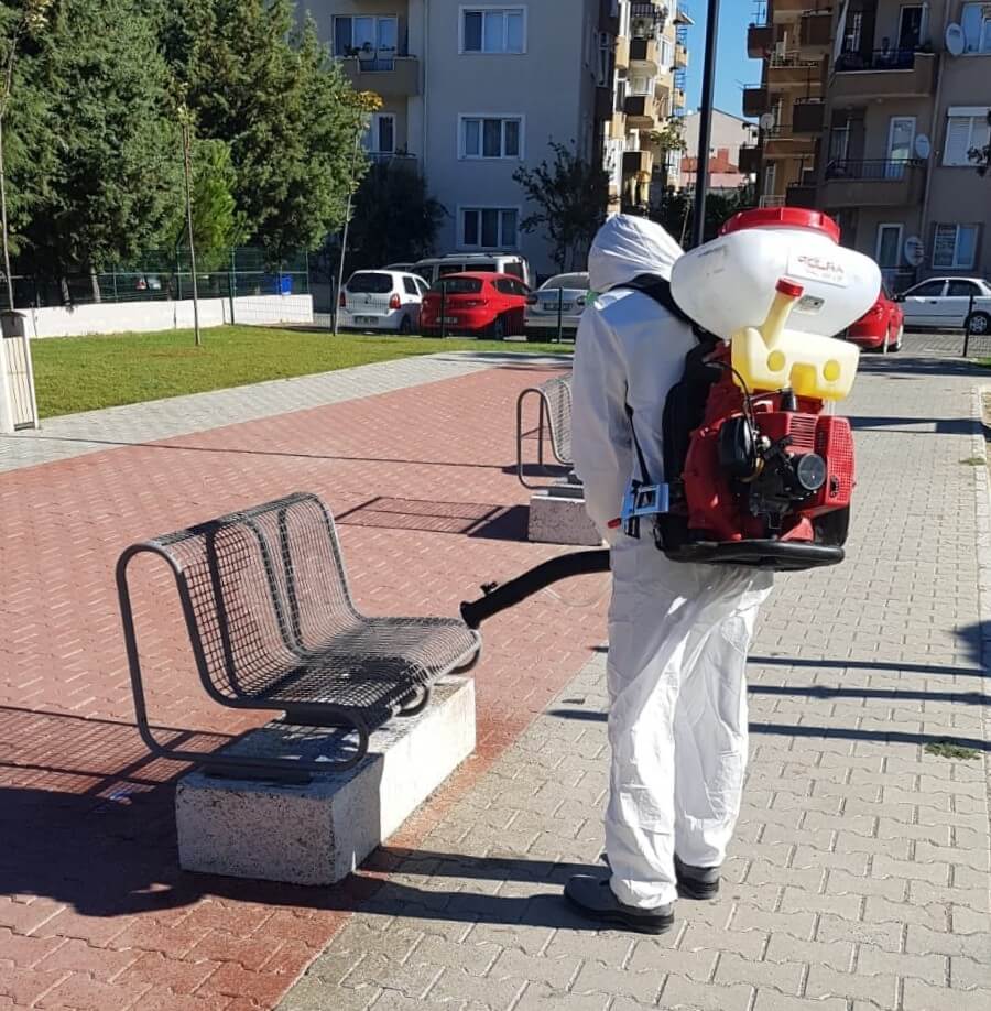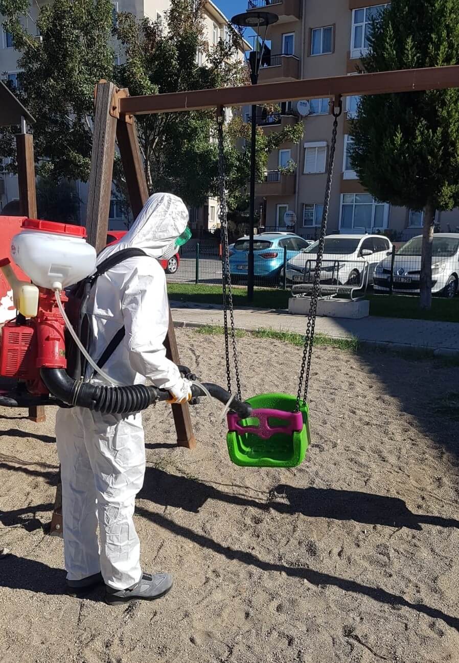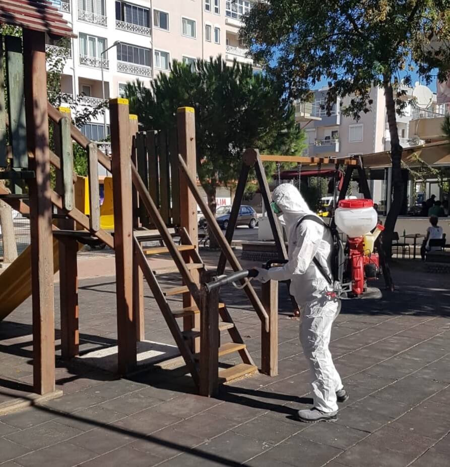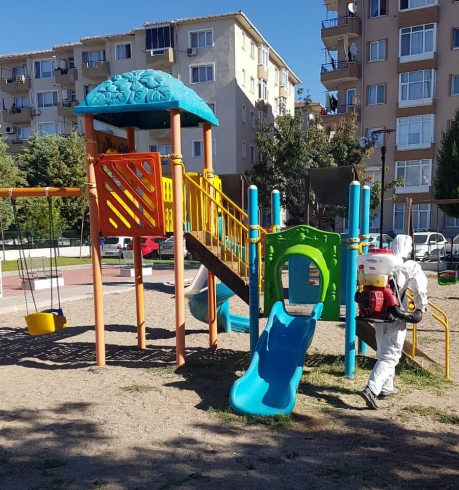 Koronavirüsle mücadele kapsamında çalışmalarını aralıksız sürdüren Çanakkale Belediyesine bağlı ekipler, kent genelindeki parklarda da düzenli olarak dezenfeksiyon çalışmaları yürütüyor. Ekipler, parklar içerisinde yer alan çocuk oyun grupları, oturma alanları, çöp kovaları gibi kent mobilyalarını rutin olarak dezenfekte ediyor.
