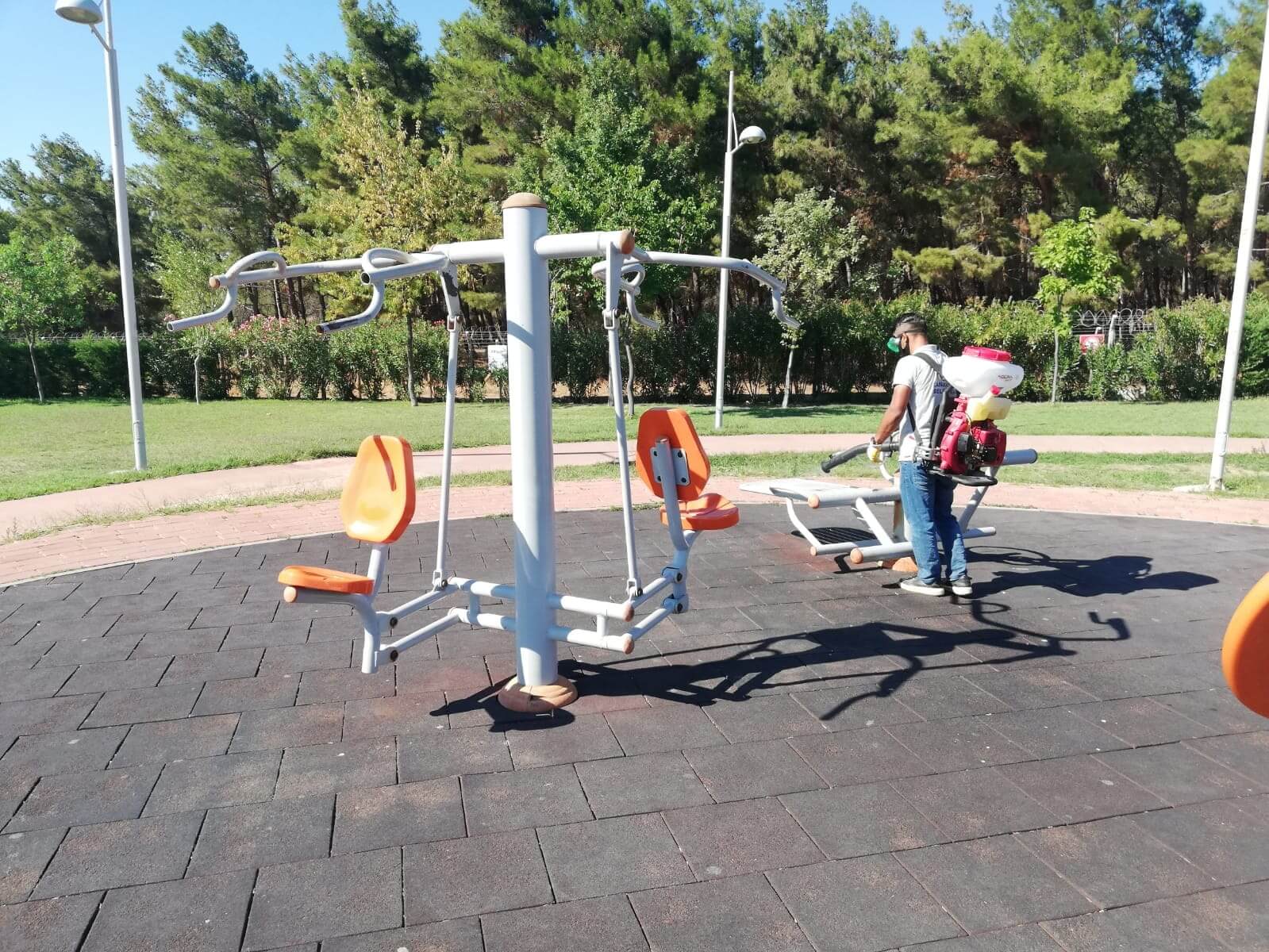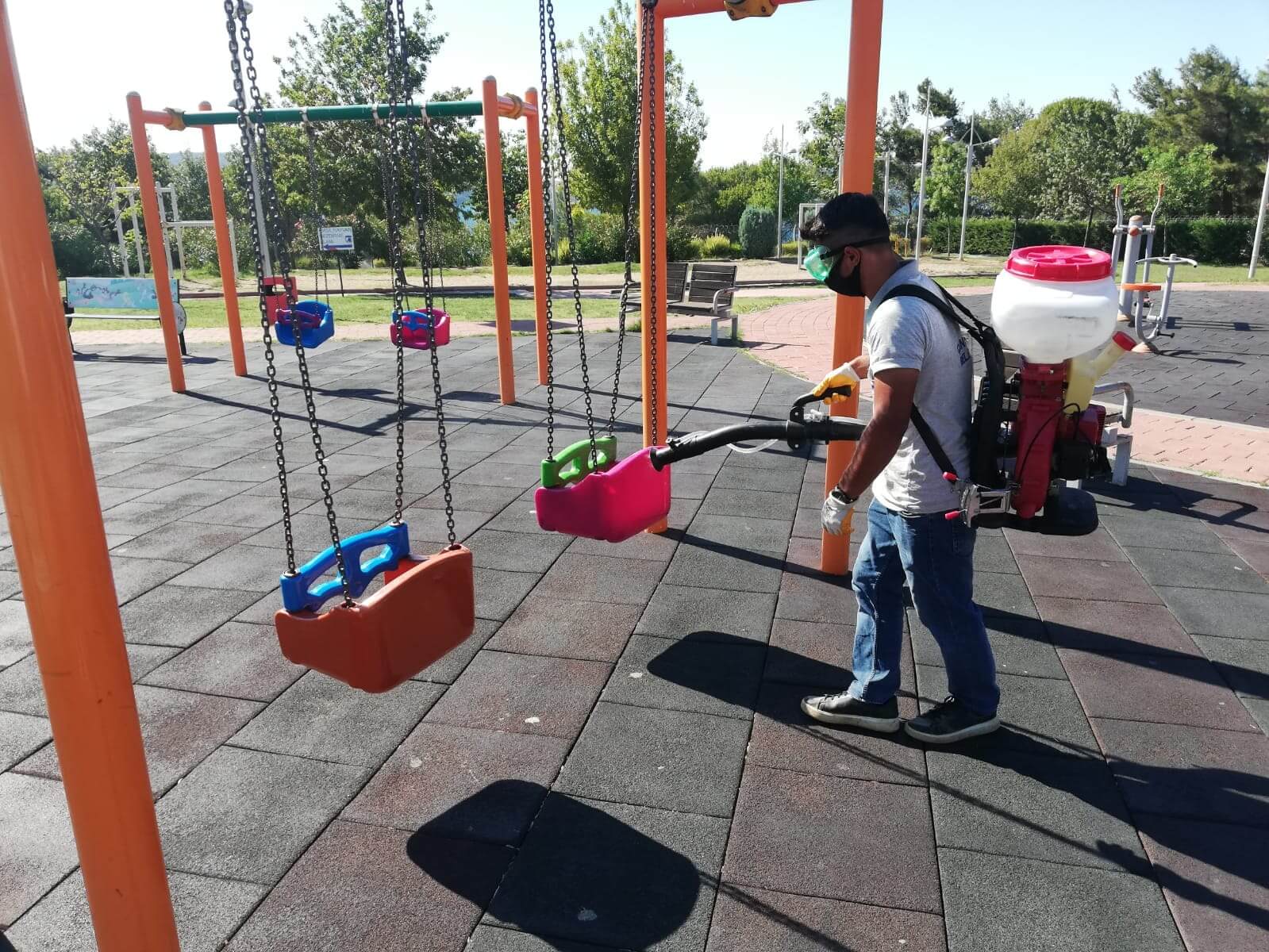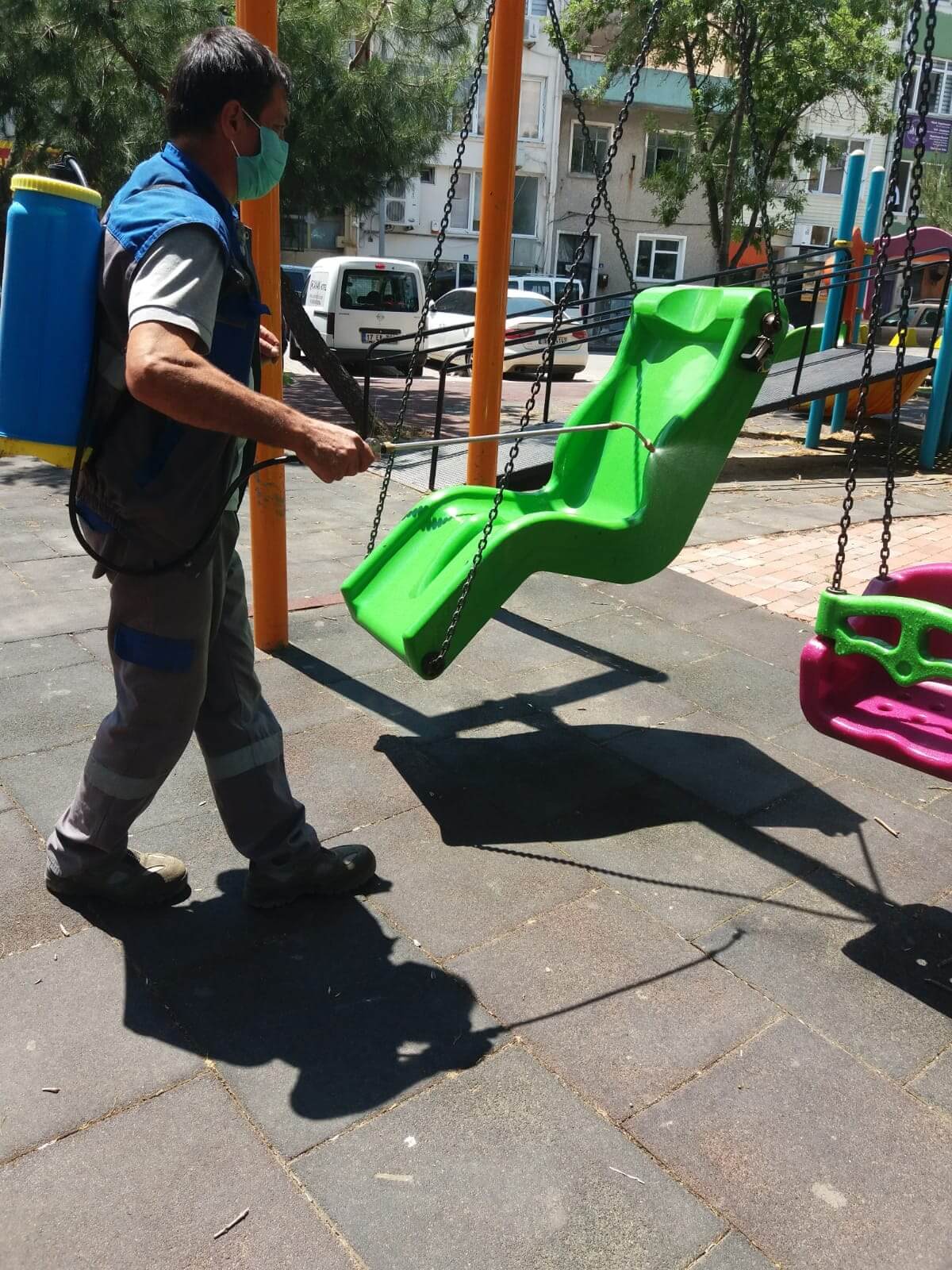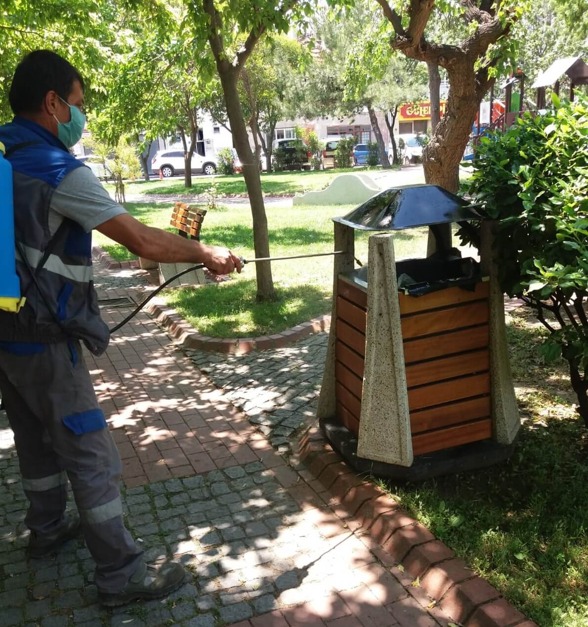 Koronavirüsle mücadele kapsamında çalışmalarını aralıksız sürdüren Çanakkale Belediyesine bağlı ekipler, kent genelindeki parklarda da düzenli olarak dezenfeksiyon çalışmaları yürütüyor. Ekipler, parklar içerisinde yer alan çocuk oyun grupları, oturma alanları, çöp kovaları gibi kent mobilyalarını rutin olarak dezenfekte ediyor.