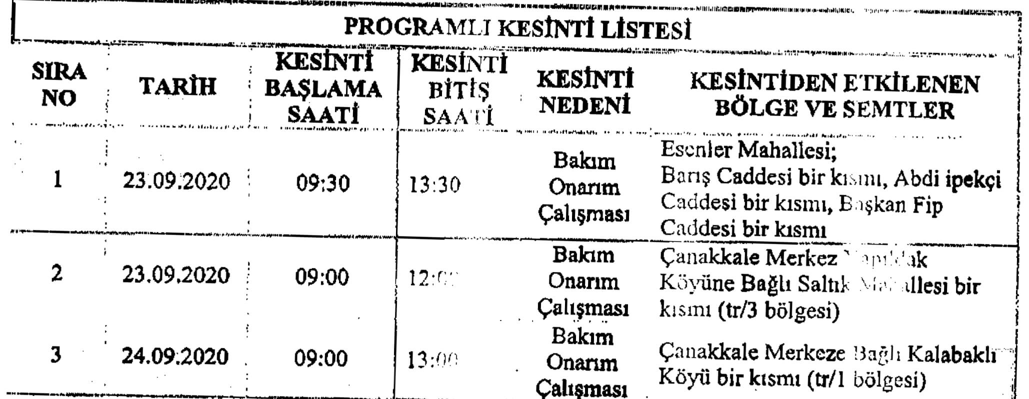 Uludağ Elektrik Dağıtım A.Ş. Çanakkale İşletme Bakım Mühendisliğinden yapılan açıklamaya göre;