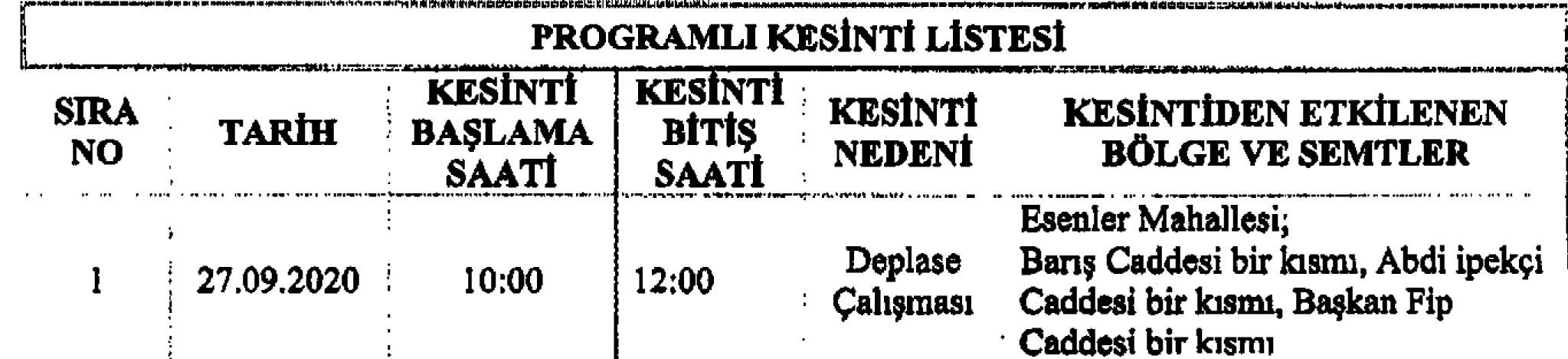 Enerji Nakil Hatlarında yapılacak deplase çalışması kapsamında görselde belirtilen tarih ve belirtilen yerlerde elektrik kesintisi uygulanacaktır.