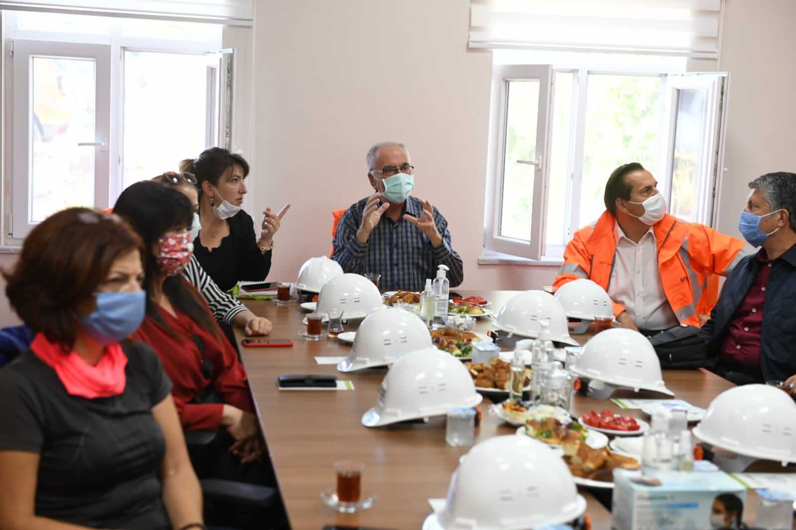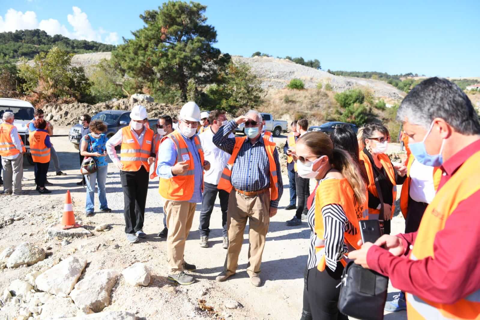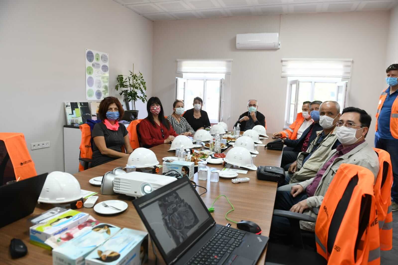 Belediye Başkan Yardımcıları ve teknik ekibin de eşlik ettiği teknik inceleme gezisi kapsamında ilk olarak SUEZ firması yetkilileri tarafından çöp depolama sahası içerisinde yapımı devam eden yatırımlara ilişkin sunum gerçekleştirildi.