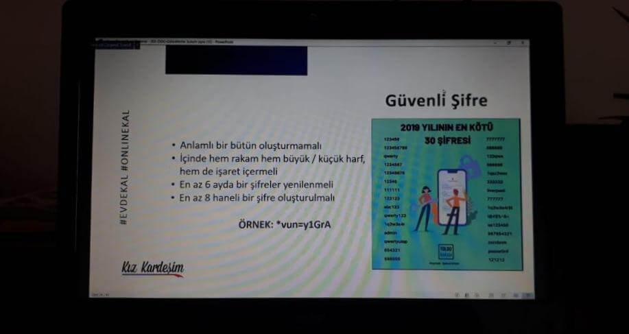 Türkiye Odalar ve Borsalar Birliği, Habitat Derneği, İstanbul Teknik Üniversitesi ve Coca-Cola Türkiye iş birliği ile yürütülen Kız Kardeşim Projesinin 17 Ekim 2020 tarihli Dijital Dünyada Güvenlik Eğitimi ise Habitat Derneğinden eğitmenler tarafından gerçekleştirildi.