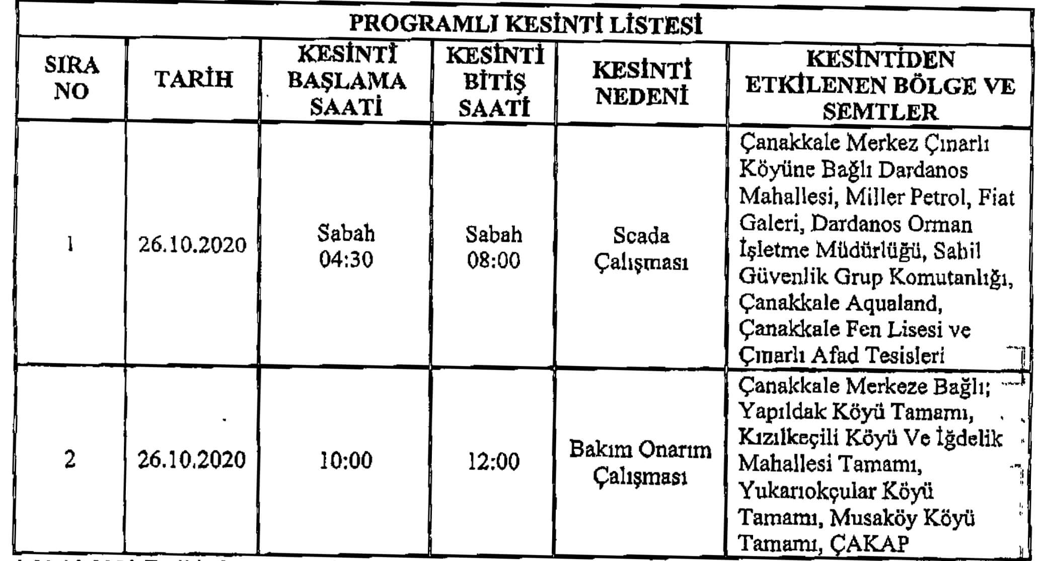 Uludağ Elektrik Dağıtım A.Ş. Çanakkale İşletme Bakım Mühendisliğinden yapılan açıklamaya göre;