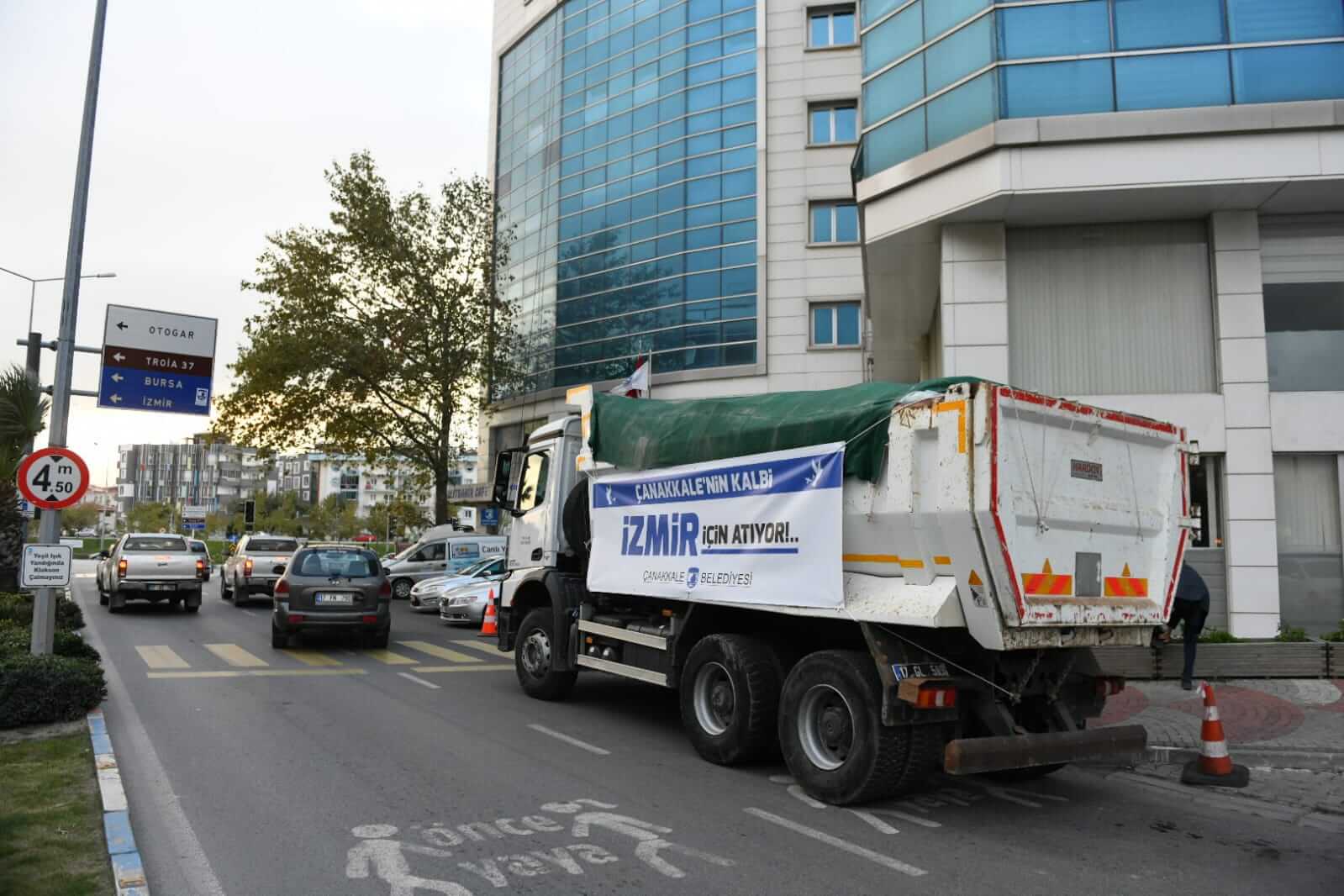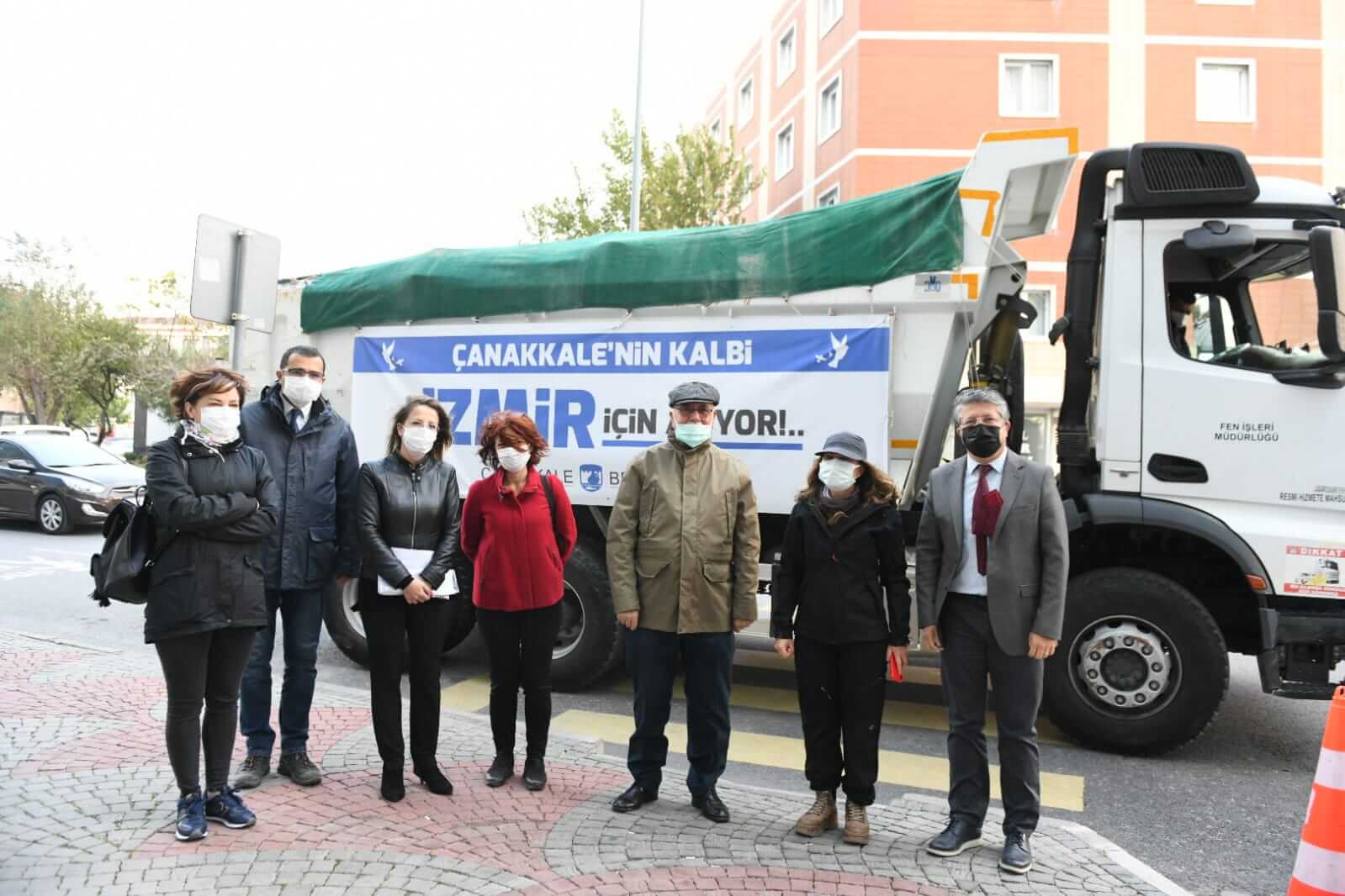 İzmir'de meydana gelen deprem felaketi nedeniyle Çanakkale Belediyesi tarafından depremden etkilenen vatandaşlara ulaştırılmak üzere hazırlanan ihtiyaç malzemeleri yola çıktı.