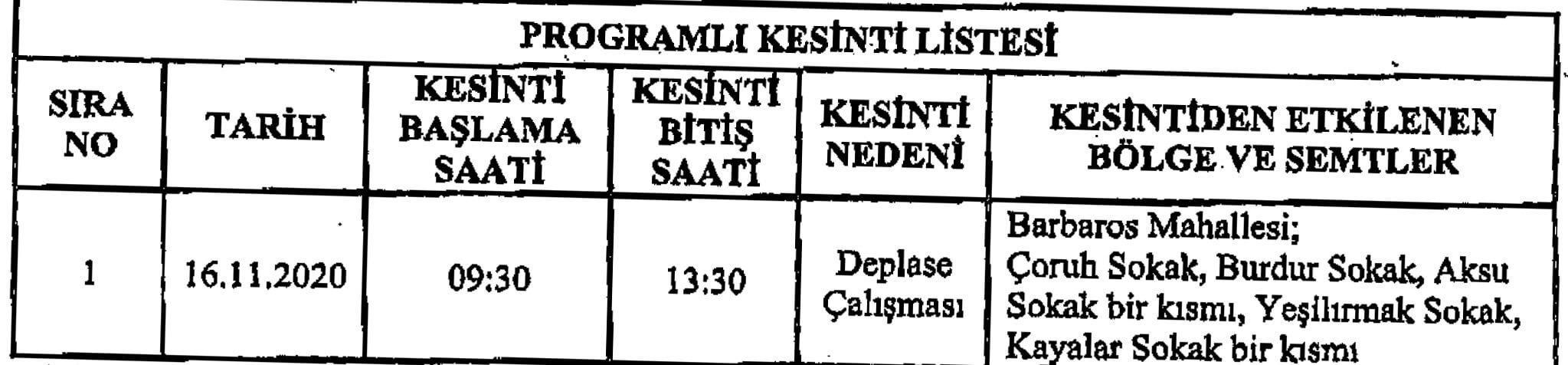 Enerji Nakil Hatlarında yapılacak olan deplase çalışması kapsamında görselde belirtilen tarih ve belirtilen yerlerde elektrik kesintisi uygulanacaktır.