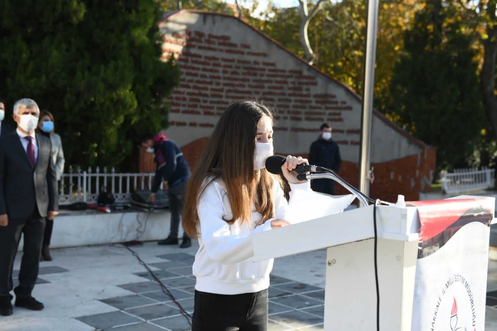Törene Çanakkale Valisi İlhami Aktaş, Belediye Başkanı Ülgür Gökhan, İl Milli Eğitim Müdürü Ferhat Yılmaz, askeri ve sivil protokol üyeleri ile siyasi parti temsilcileri katıldı. Atatürk büstüne bırakılan İl Milli Eğitim Müdürlüğü çelenginin ardından tören, saygı duruşu ve İstiklal Marşı’nın okunması ile devam etti. İl Milli Eğitim Müdürü Yılmaz’ın günün anlam ve önemine ilişkin yaptığı konuşmanın ardından tören, aday öğretmenlerin yemin etmesi ve şiir dinletisi ile son buldu.