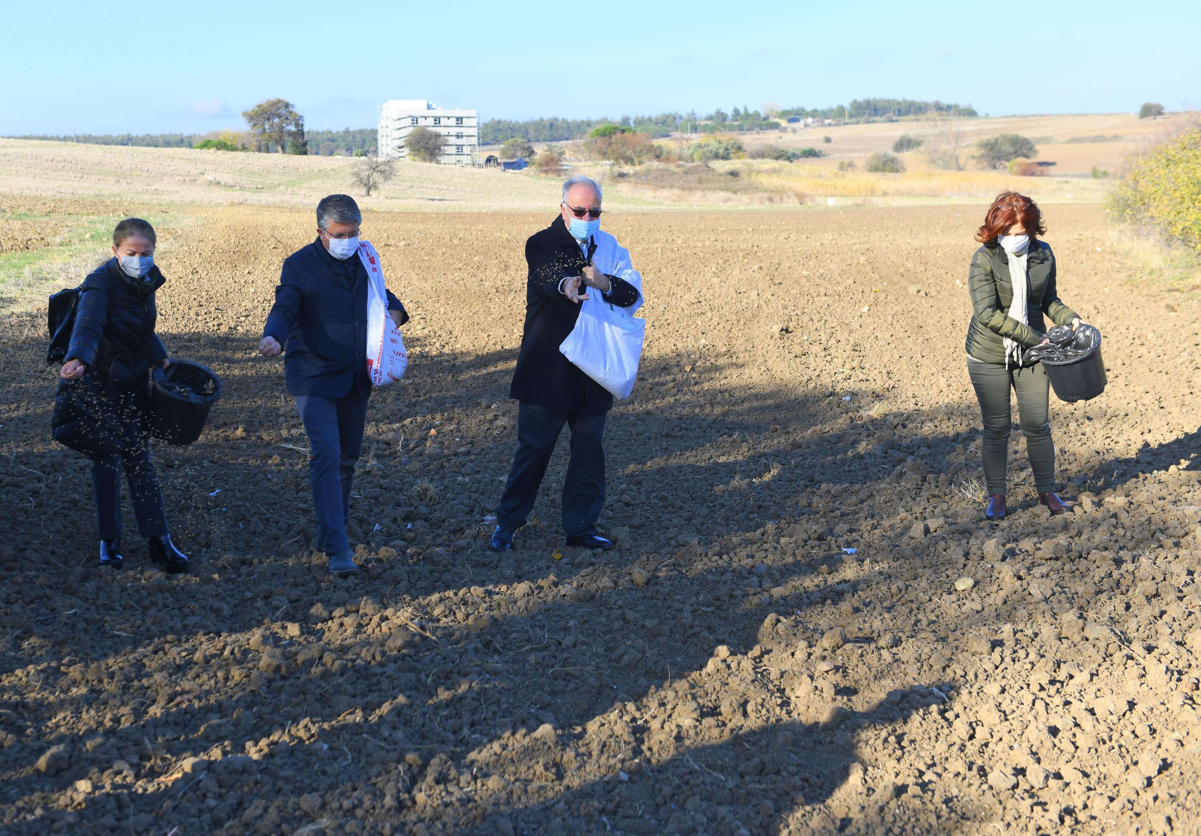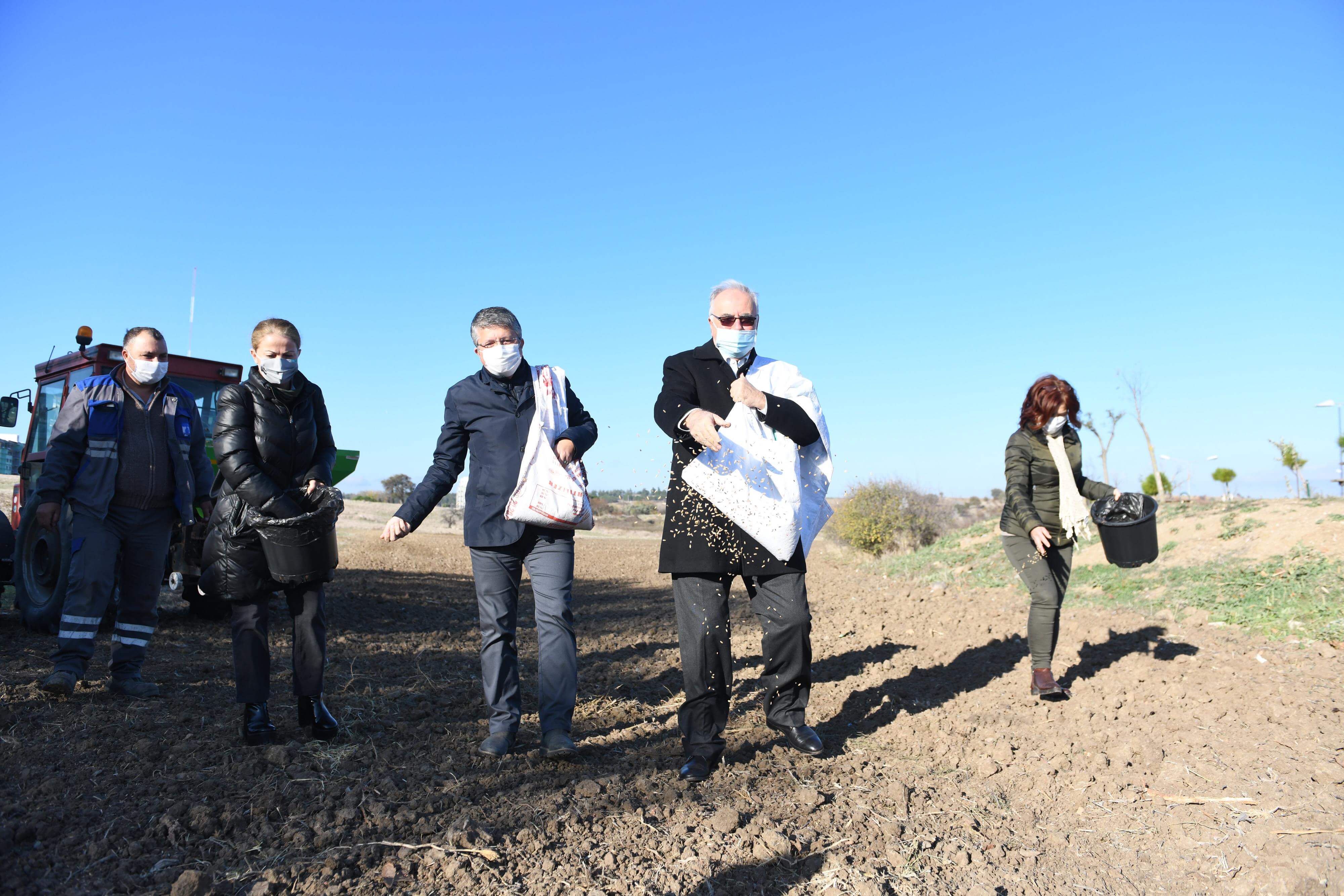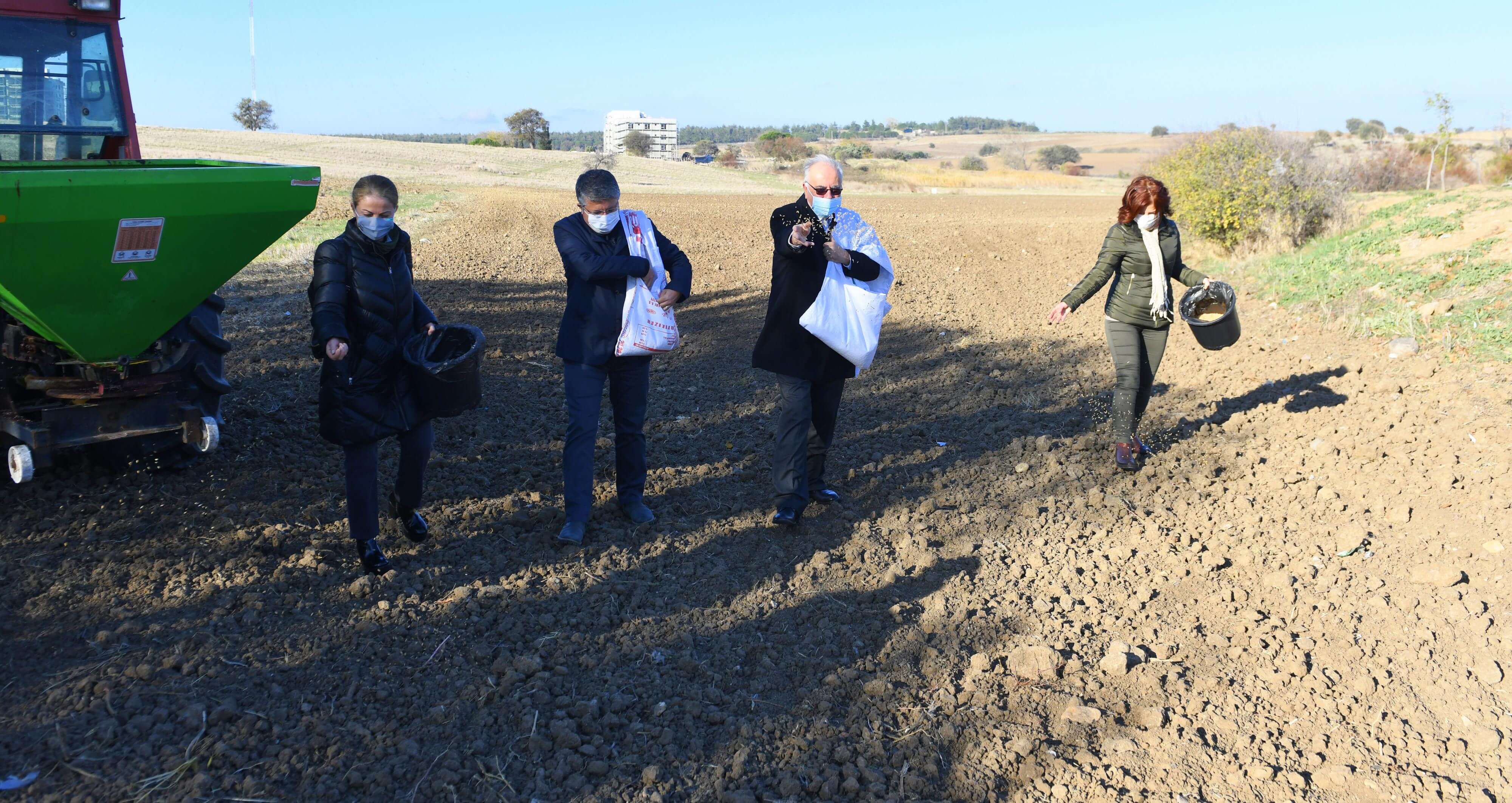 Ekim faaliyetine Belediye Başkanı Ülgür Gökhan, Belediye Başkan Yardımcıları Handan Özyayla Kenar, Rebiye Turan Ünüvar ile M. İrfan Mutluay, Park Bahçeler Müdürü Göksel Koyuncu ile müdürlük çalışanları da katıldı. Çalışmalar hakkında bilgi alan Belediye Başkanı Ülgür Gökhan, 2021 yılının üretim faaliyetlerinin hızla başladığını belirterek, özellikle atalık tohumların çoğalması adına Belediyeye ait olan alanların tarımsal üretim çalışmalarında değerlendirildiğini kaydetti. Geçtiğimiz sezonun karakılçık tohumlarının da çiftçilerle paylaşıldığını ve o tohumların bu dönem yaklaşık 350 dönümlük bir alana ekileceğini kaydeden Başkan Gökhan, tohumların hem her geçen yıl çoğaltılması hem de başta un olmak üzere sağlıklı gıdaya dönüştürülmesi için çalışıldığını vurguladı. Başkan Gökhan ayrıca, kentlilerden büyük ilgi gören Hobi Bahçeleri projesinin de ilerleyen süreçte genişletilmesinin hedeflendiğini söyledi.