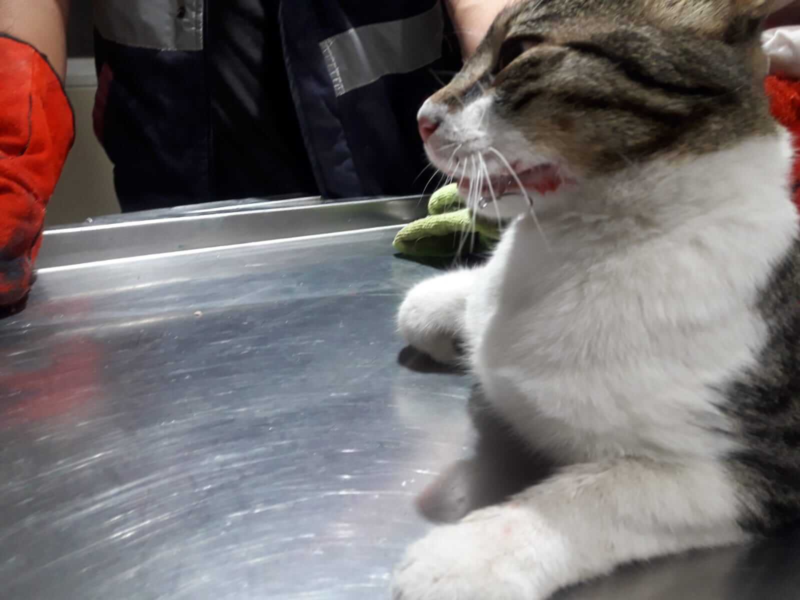 Belediye ekipleri kentlilerden gelen ihbar üzerine Barbaros Mahallesi’nde bulunan tabyalar bölgesinden yaralı kediyi alarak ağzı, ön ve arka patilerindeki balık iğnelerini çıkarttı. Balık iğnelerinden kurutulan can dostumuz, tedavisinin ardından ekipler tarafından yeniden yaşam alanına bırakıldı.