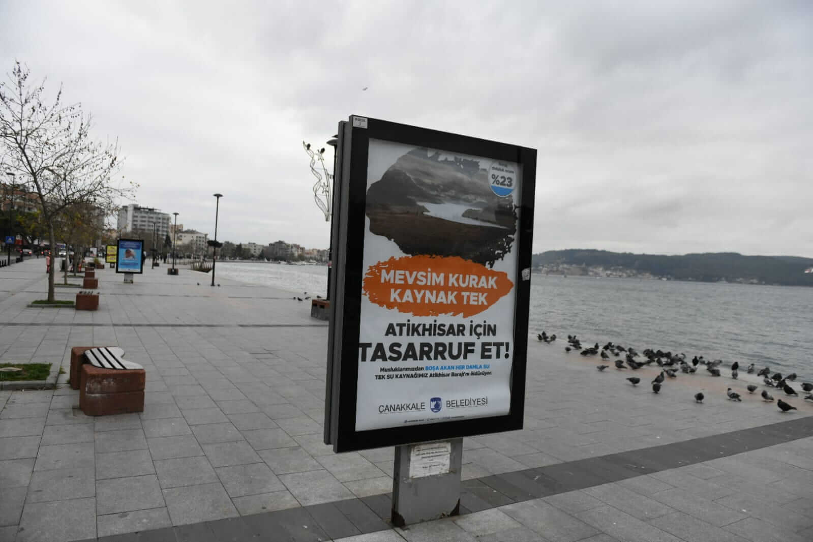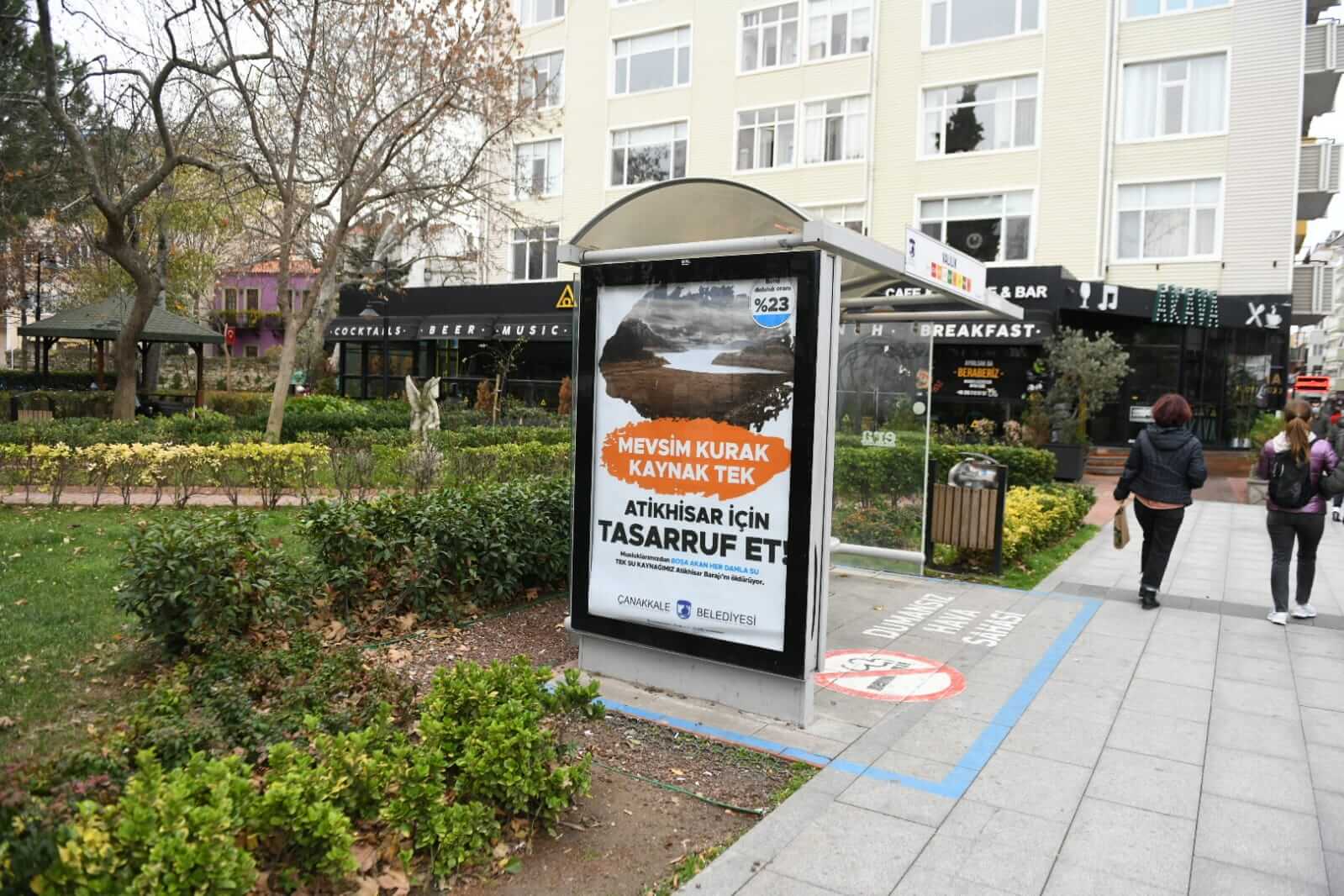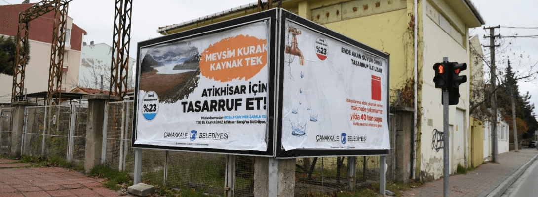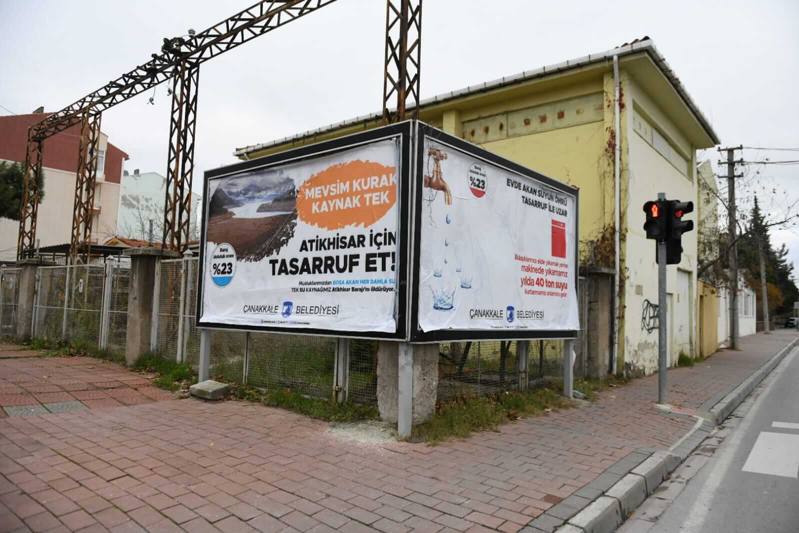 Atikhisar Barajı'ndaki doluluk oranına dikkat çekilen ve su tasarrufunun önemine vurgu yapılan afişler kentin çeşitli noktalarındaki raket ve billboardlara asılarak, kentlilere su tasarrufu yapmaları için çağrıda bulunuldu.