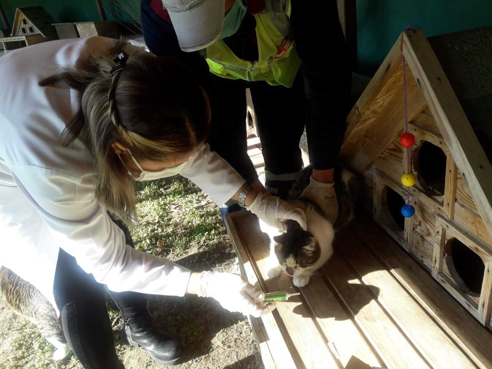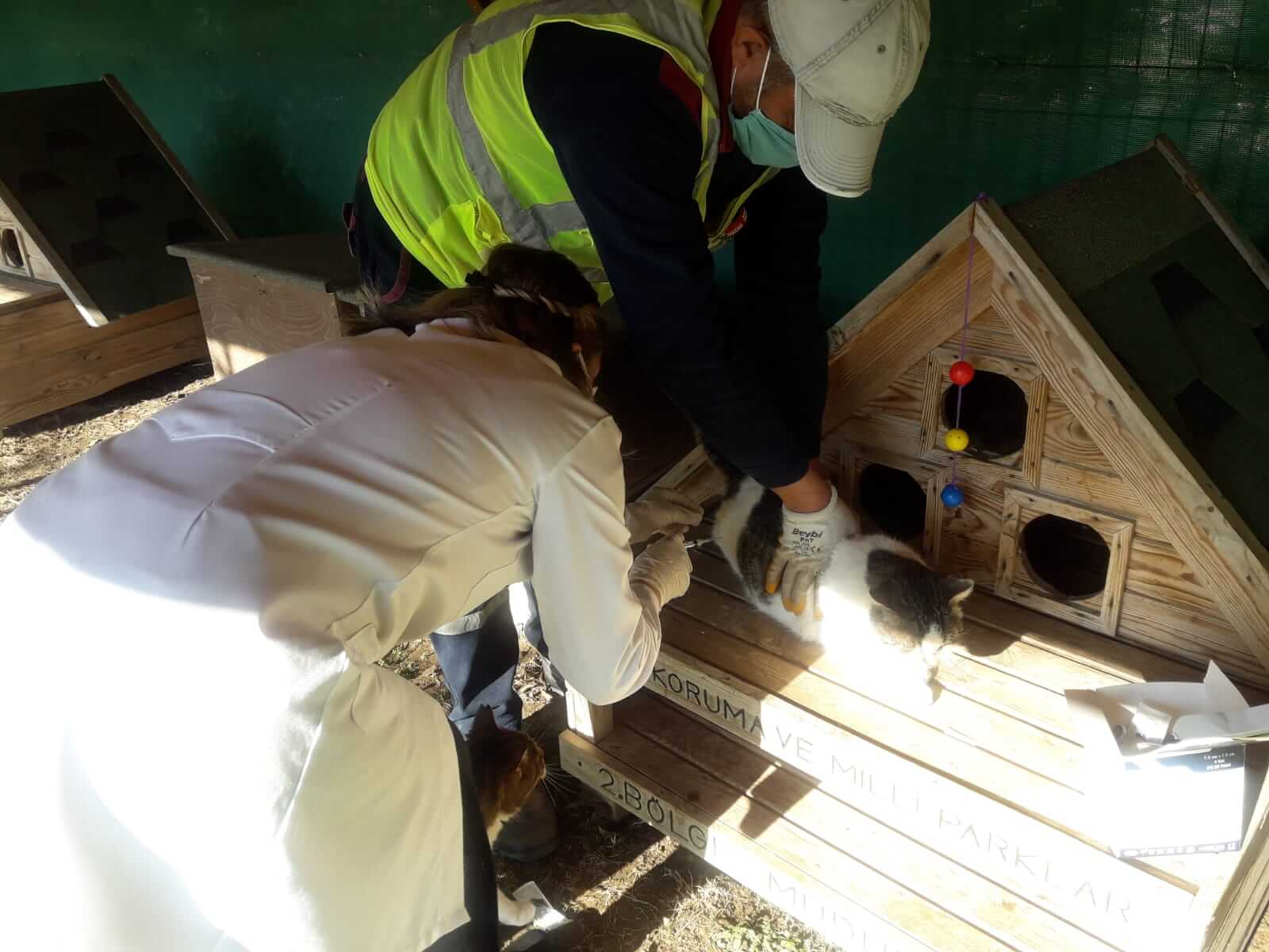 Temizlik çalışmasının yanı sıra ekipler, kedi köyü sakinlerine yönelik sağlık taraması yaptı. Çalışma kapsamında sağlık taramasında geçirilen can dostlarımızın rutin aşılamaları da gerçekleştirildi.