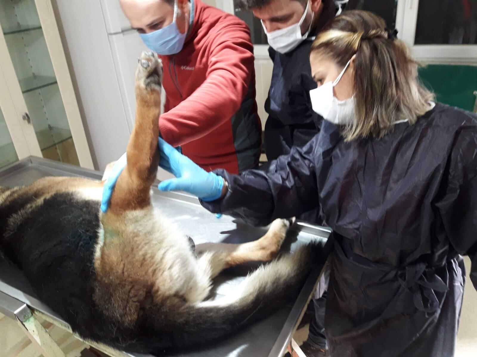 Veteriner ekiplerince yapılan muayene ve kontroller sonucunda can dostumuzun ateşli silahla yaralandığı tespit edildi. Merkezde yapılan gerekli tedavinin tamamlanmasının ardından can dostumuz alındığı yere tekrar bırakılmıştır.