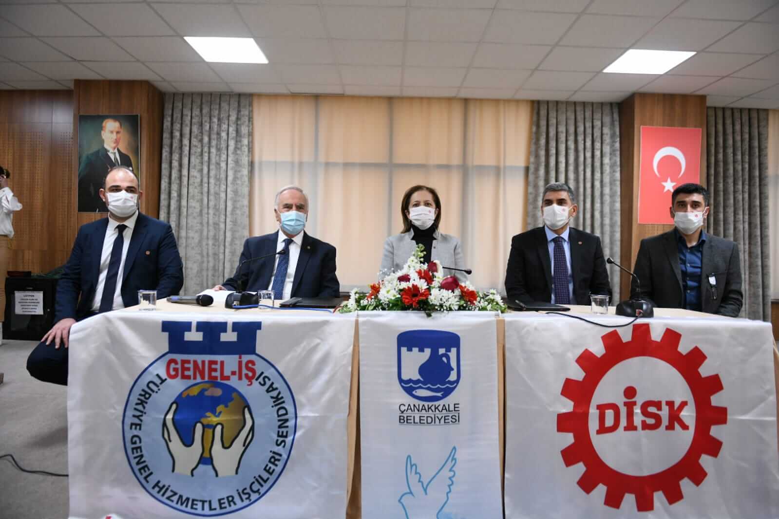 Çanakkale Belediyesi ve Çanakkale Kentsel Hizmetler Tic. ve San. A.Ş ile DİSK Genel-İş arasında toplu sözleşme imza töreni, Belediye Çalışanları Sosyal Tesislerinde gerçekleştirildi.