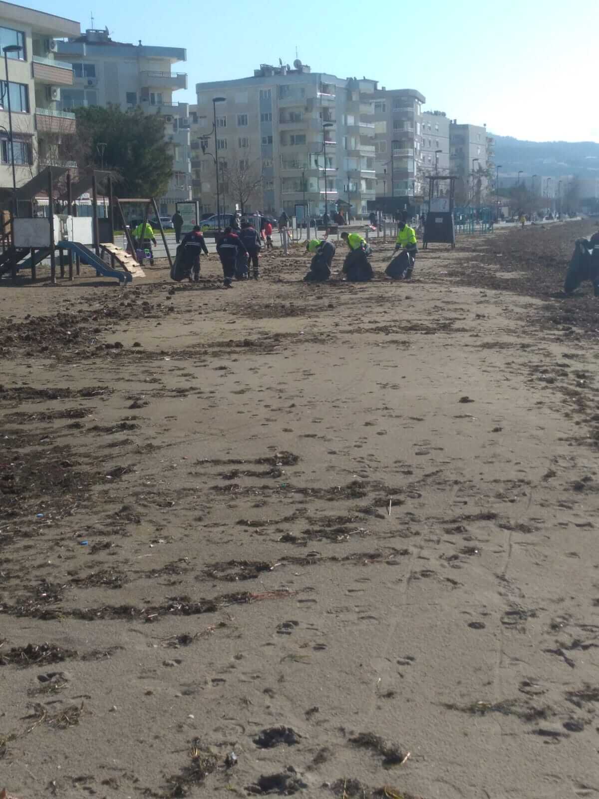 Kent genelinde gerçekleştirilen temizlik çalışmaları doğrultusunda ayrıca rüzgar ve dalgalar nedeni ile Yeni Kordon sahiline vuran atıklar da ekipler tarafından toplandı.
