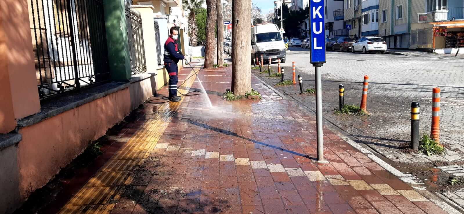 Temizlik İşleri Müdürlüğü ekiplerince cadde ve sokaklarda gerçekleştirilen çalışma kapsamında çeşitli nedenler ile kirlenen kaldırımlar ve yolların yanı sıra kent mobilyaları da afiş sökme ve yıkama aracı ile temizlendi.