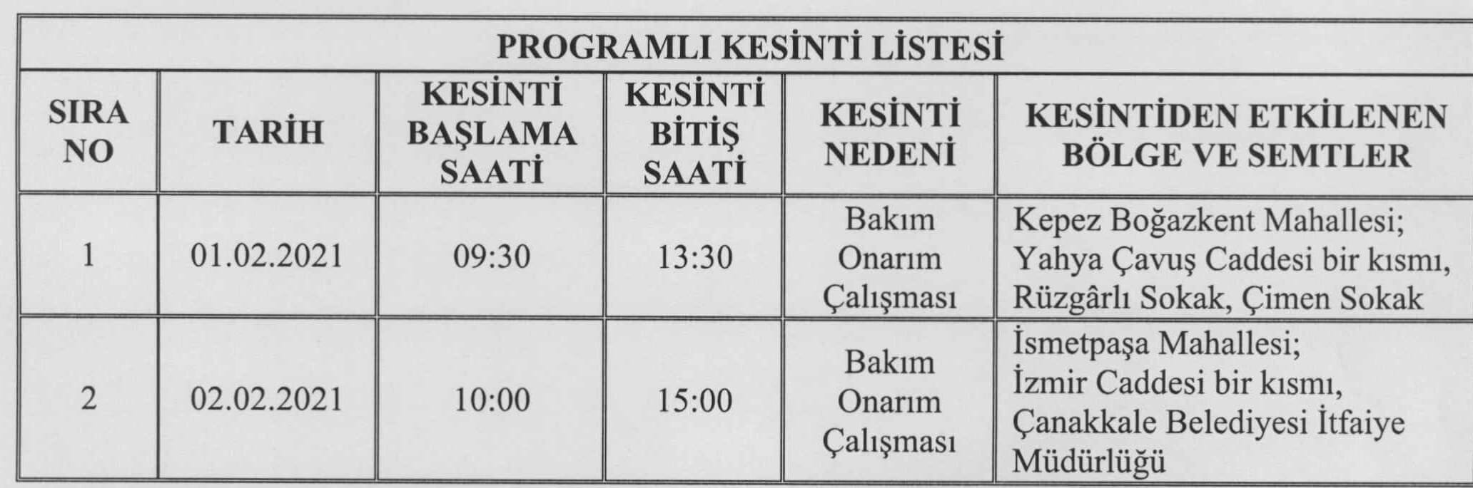 Uludağ Elektrik Dağıtım A.Ş. Çanakkale İşletme Bakım Mühendisliğinden yapılan açıklamaya göre;