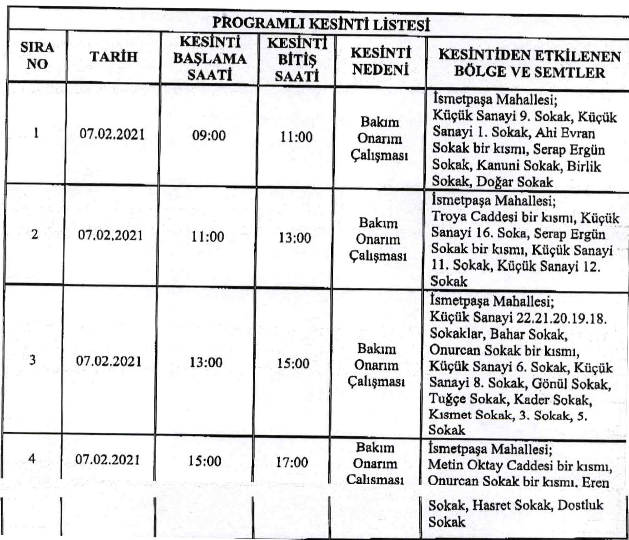Uludağ Elektrik Dağıtım A.Ş. Çanakkale İşletme Bakım Mühendisliğinden yapılan açıklamaya göre;