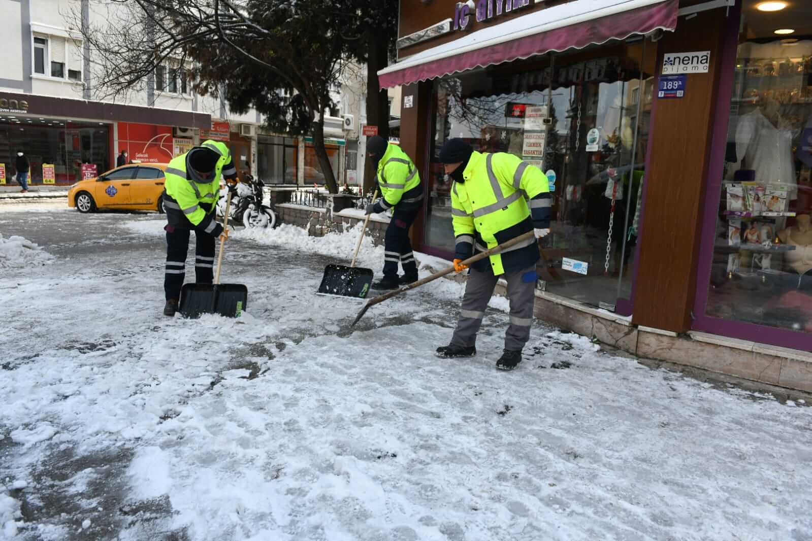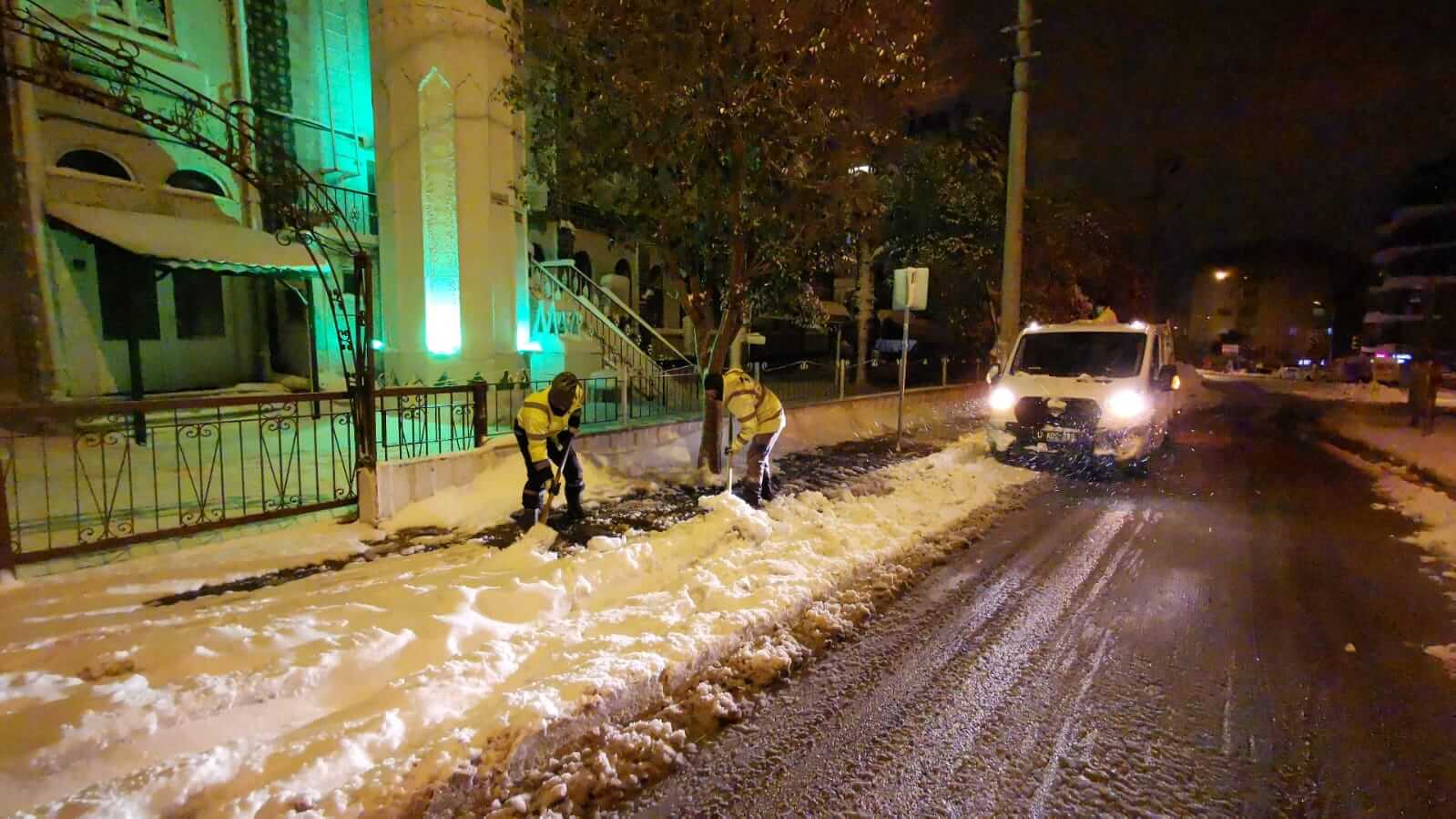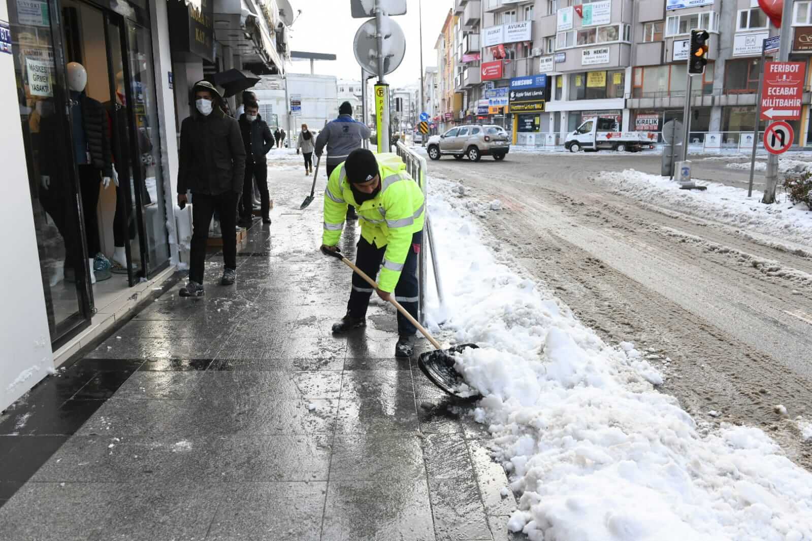 Kar yağışının sonlanmasının ardından kent genelinde gerçekleştirilen çalışmalar doğrultusunda ise, ekipler tarafından yaya ve araç güvenliği için cadde ve kaldırımlarda kar küreme çalışmasına devam edildi. Ekipler buzlanma riskine karşı da yollarda tuzlama çalışmaları gerçekleştirdi.